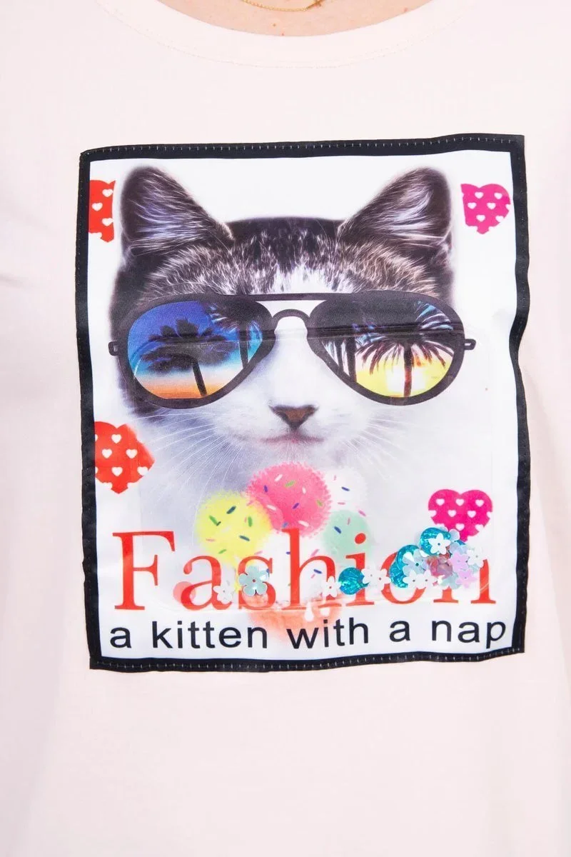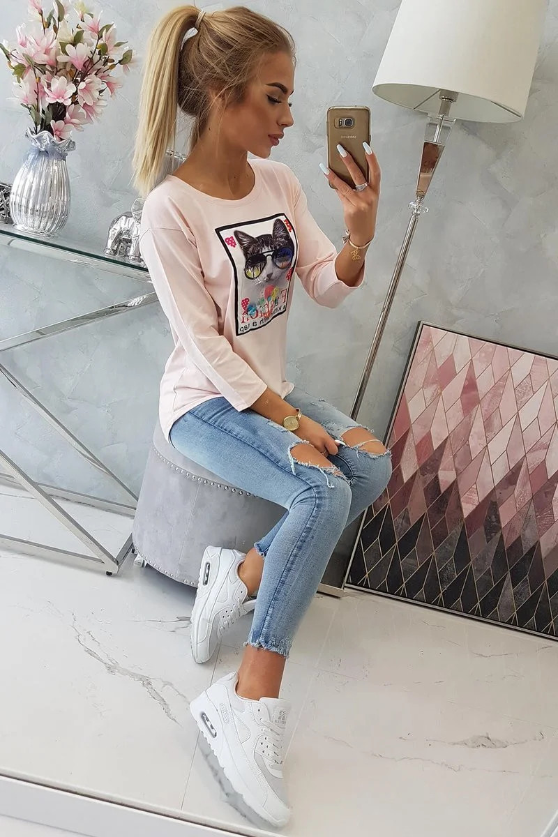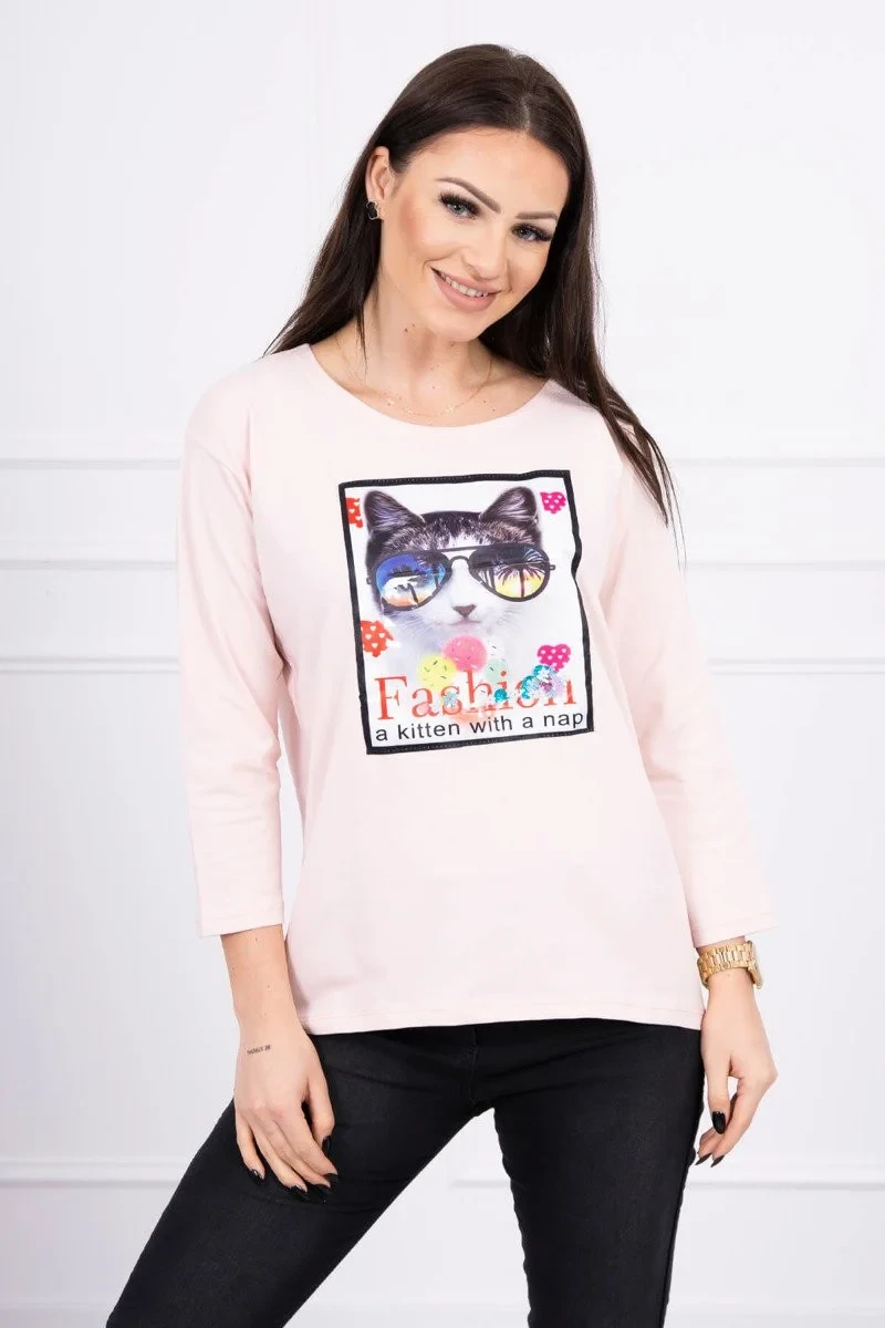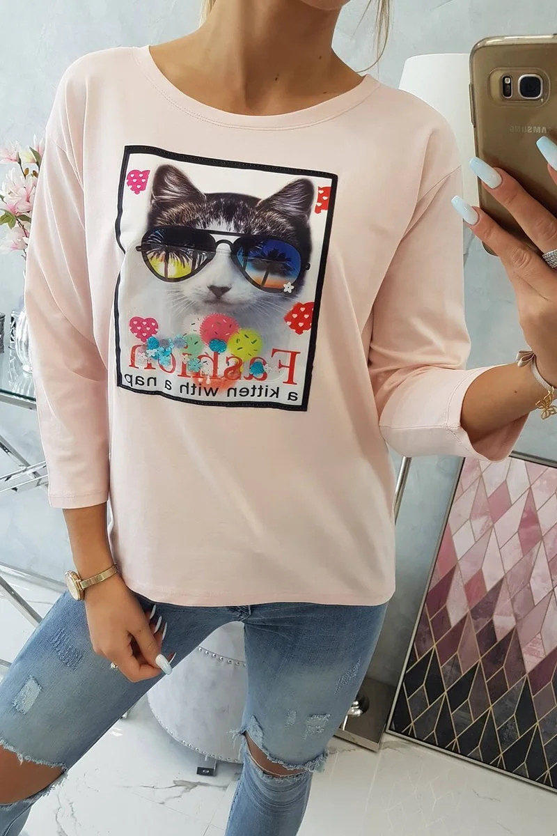 Přidání recenze k Halenka s 3D grafikou kočky pudrově růžová