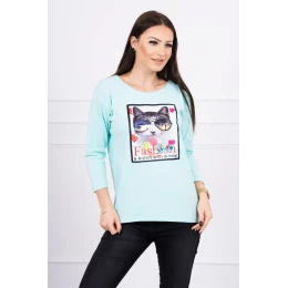 Přidání recenze k Halenka s 3D grafikou kočky v mátové barvě