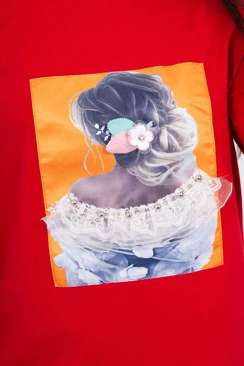 Přidání recenze k Halenka s 3D grafikou, krajková červená