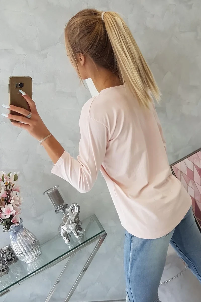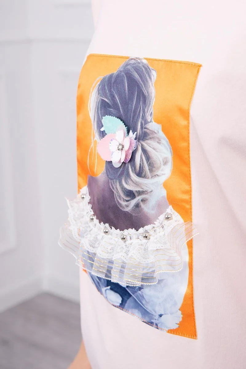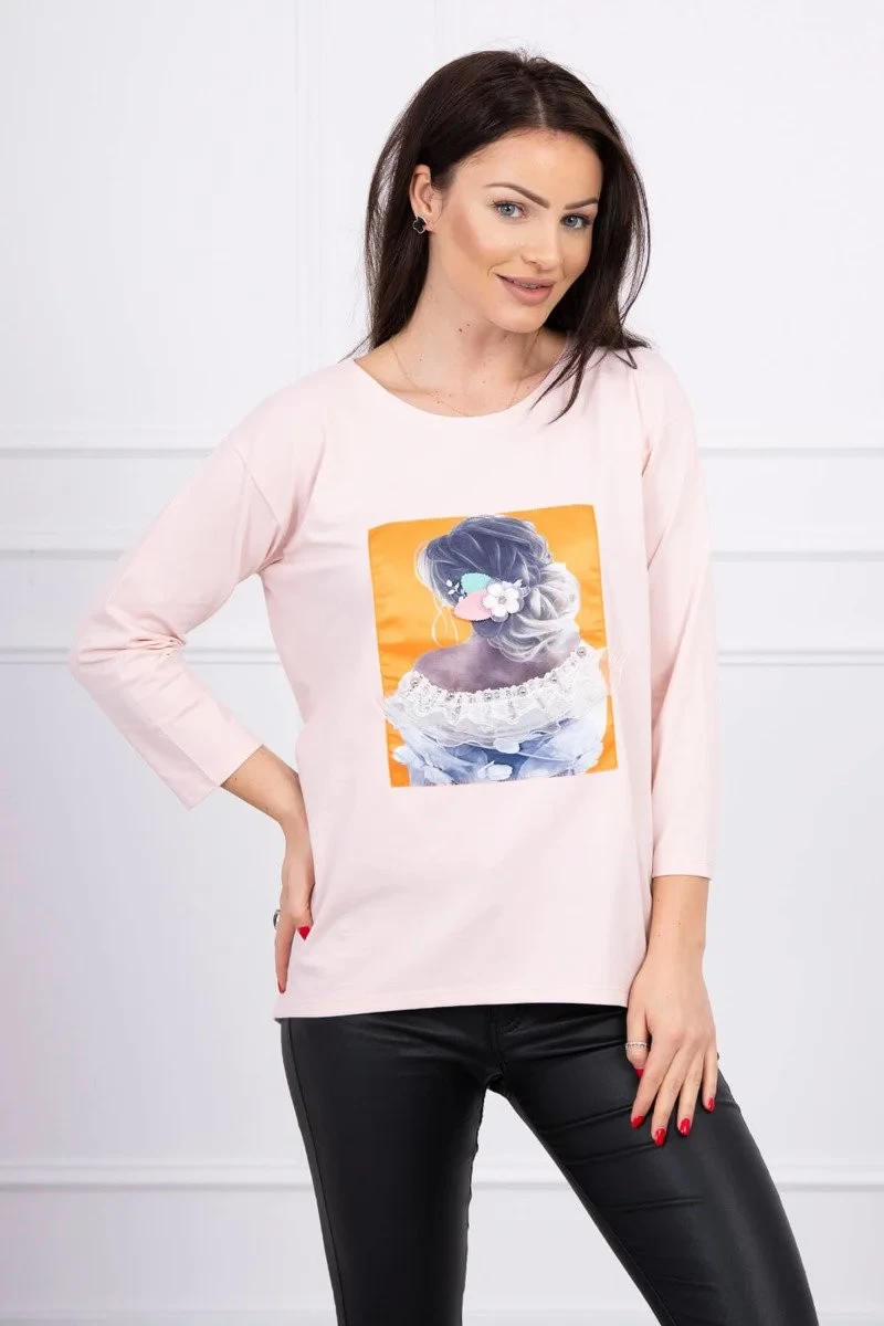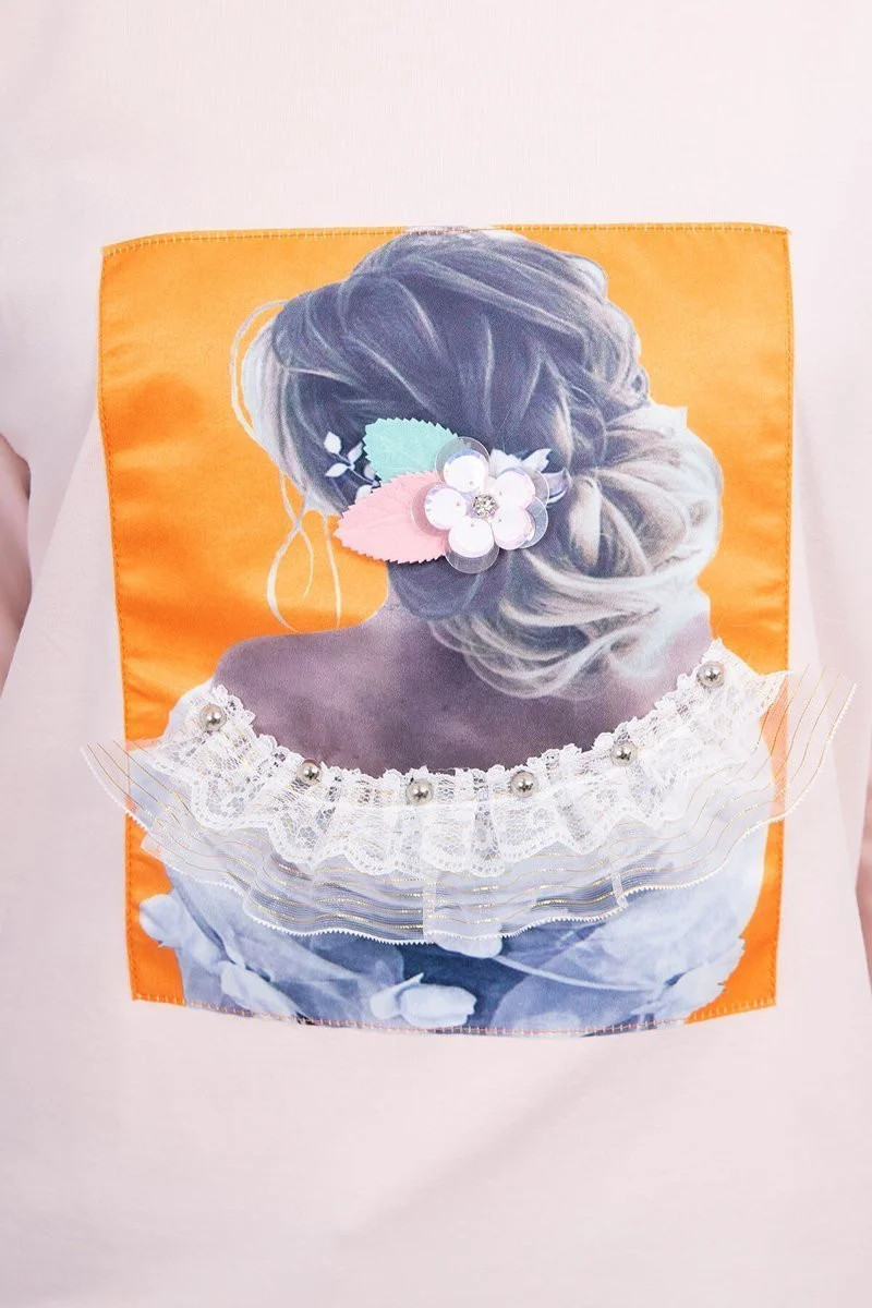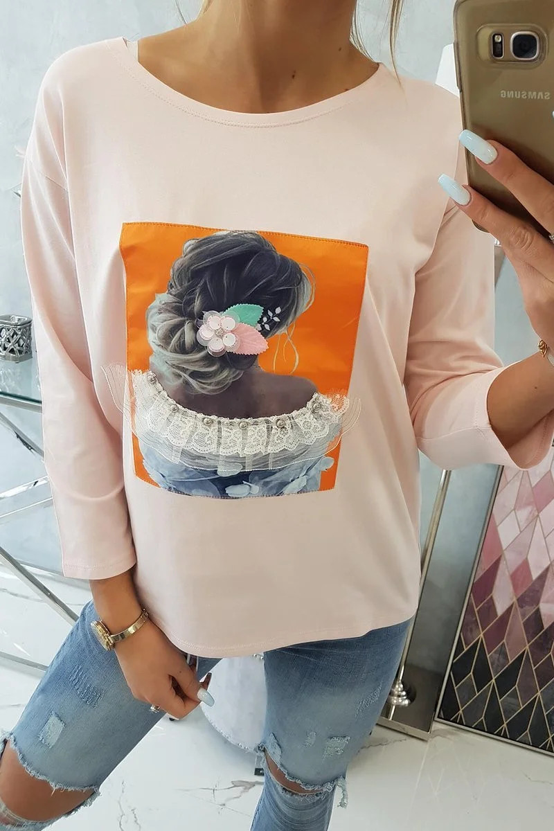 Halenka s 3D grafikou, krajková, pudrově růžová