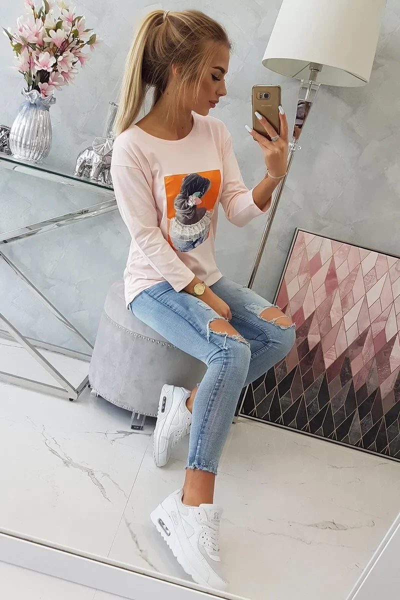 Představujeme vám super halenku. Blůza má na přední straně našitou grafiku dívky. Tato halenka se vyznačuje módním designem a precizním zpracováním. Ve vašem šatníku rozhodně nesmí chybět. Halenka je vyrobena z vysoce kvalitního materiálu. Univerzální velikost je vhodná pro dámy, které nosí každodenní oblečení ve velikostech S, M nebo L.