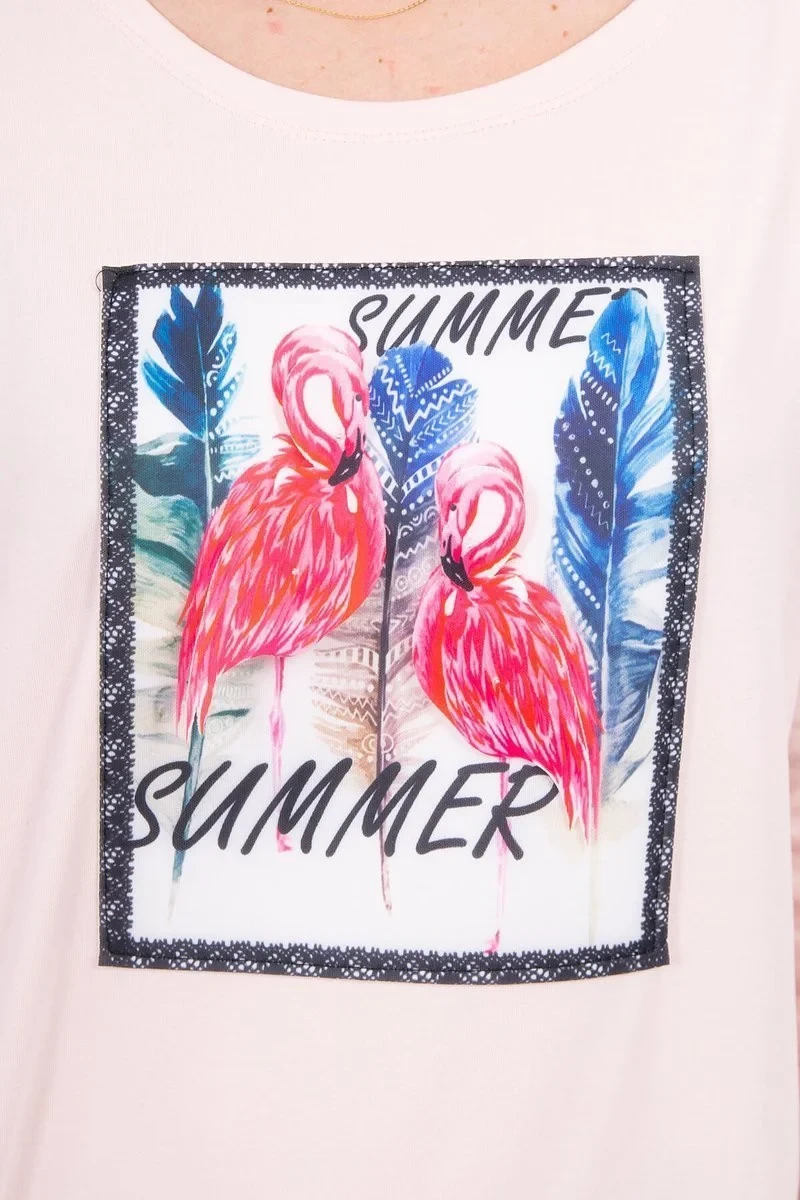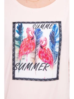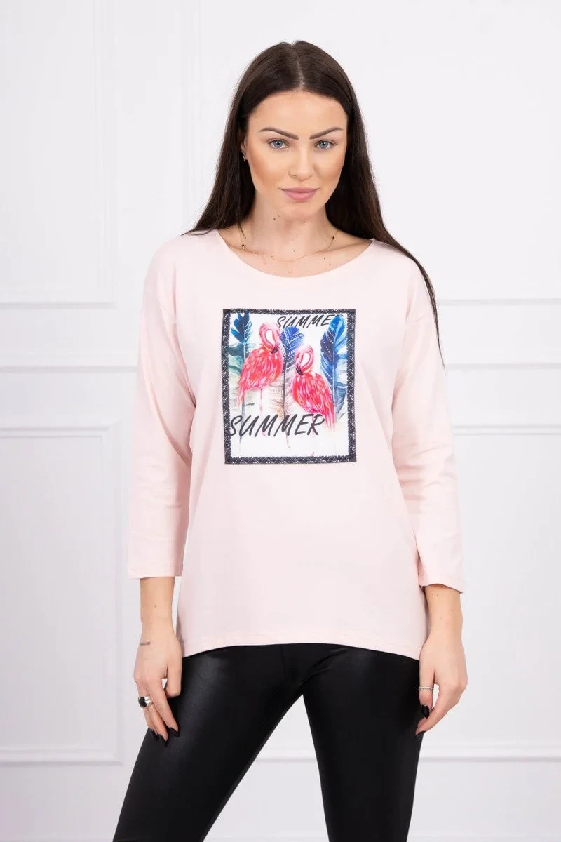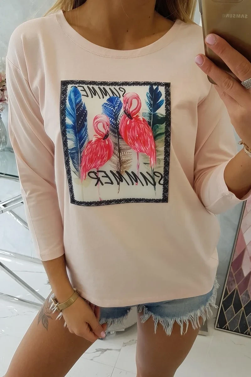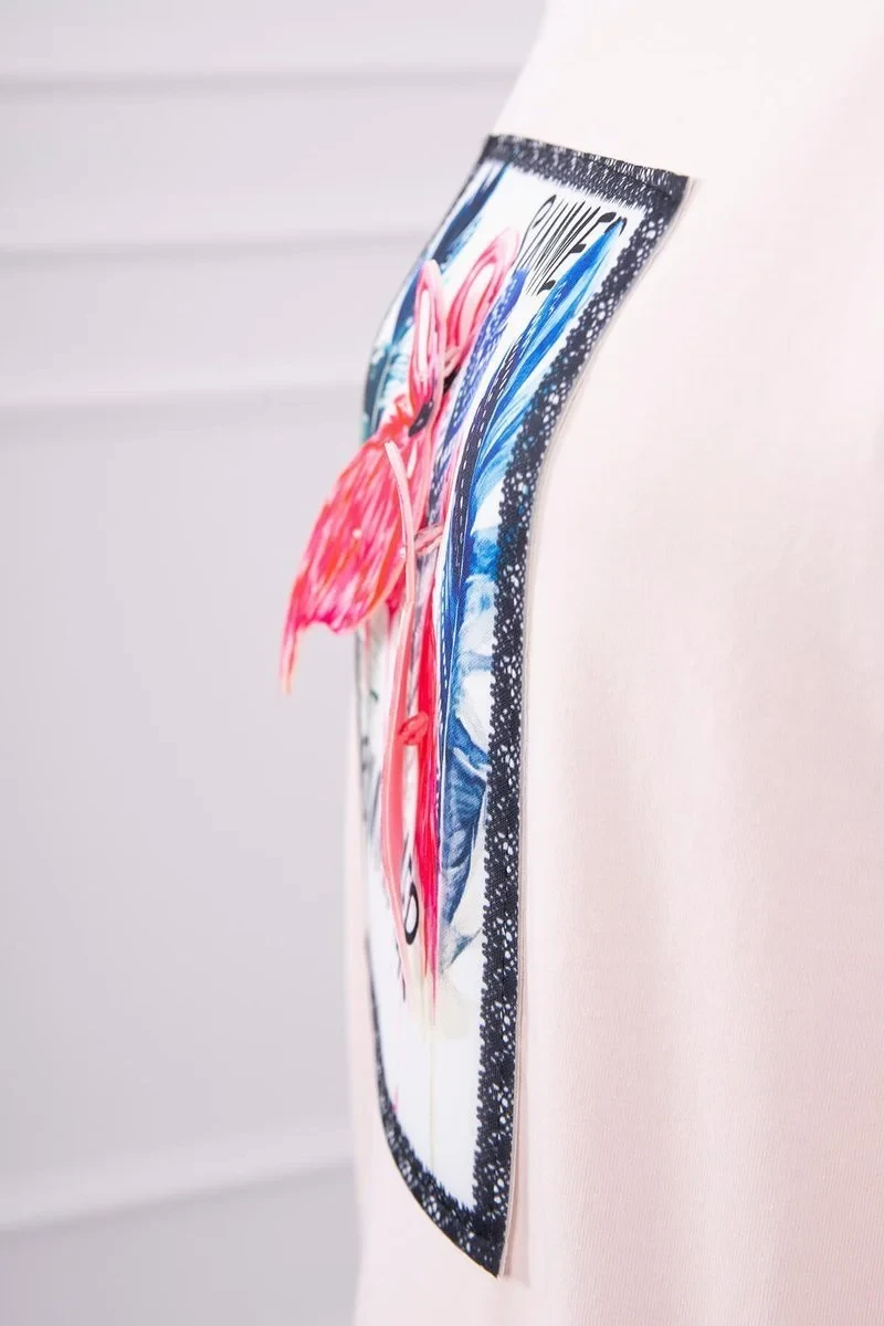 Halenka s 3D grafikou plameňáka pudrově růžová