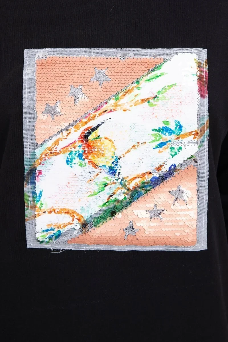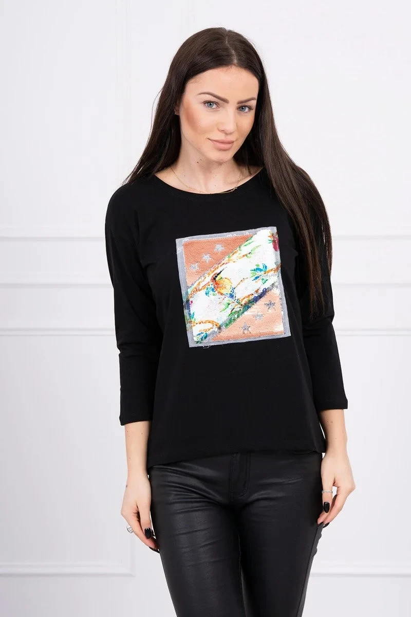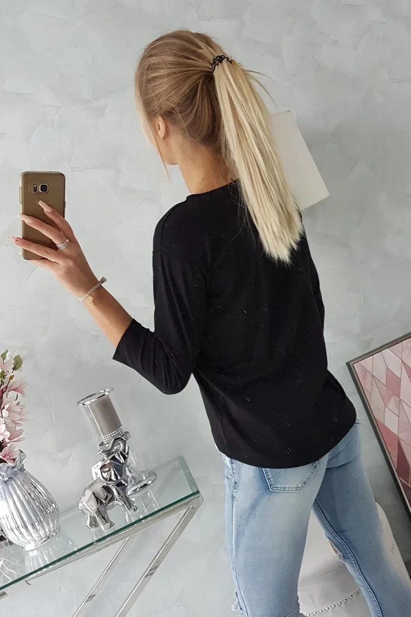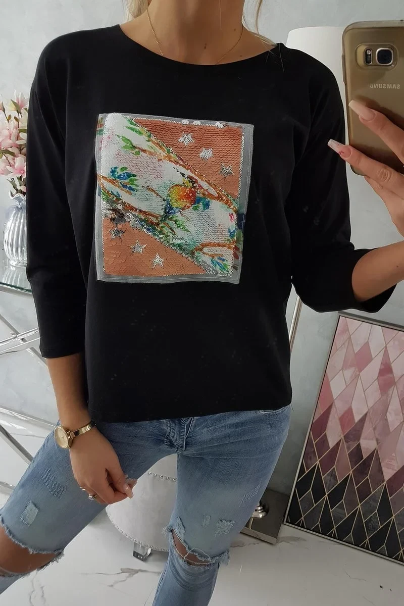 Představujeme vám módní halenku. Halenka má na přední straně flitrovanou grafiku. Ideální pro každodenní použití. Halenka je vyrobena z vysoce kvalitního materiálu. Velikost je univerzální a vyhovuje dámám, které nosí velikost M, L nebo XL.