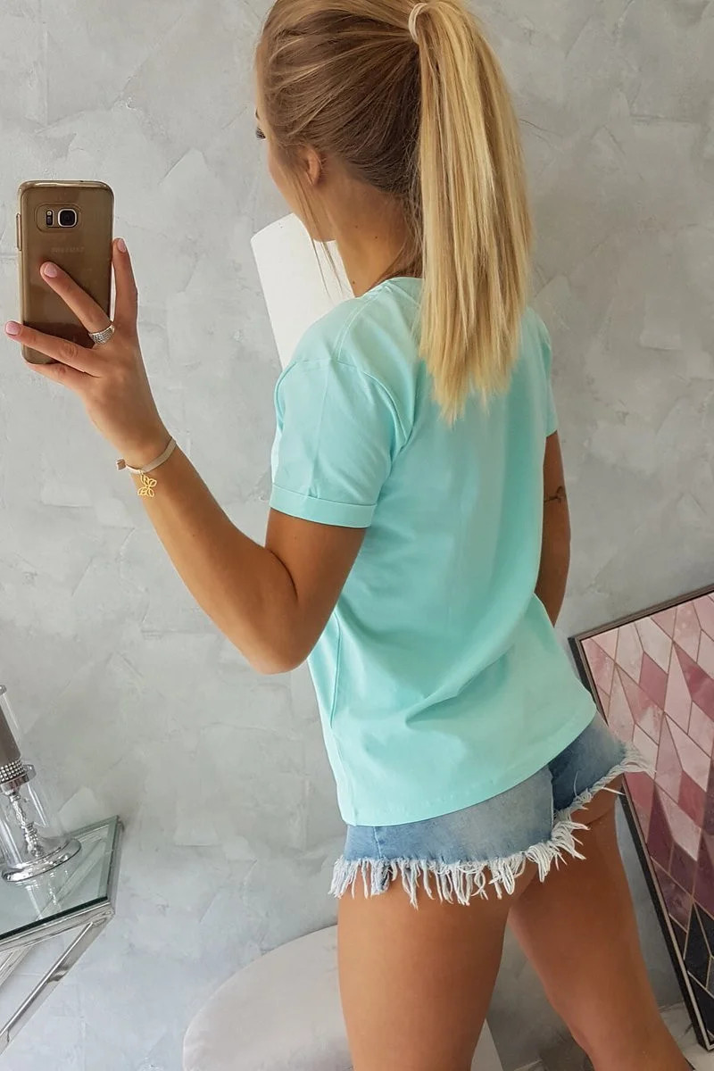 Přidání recenze k Halenka s dámskou grafikou v mátovém odstínu