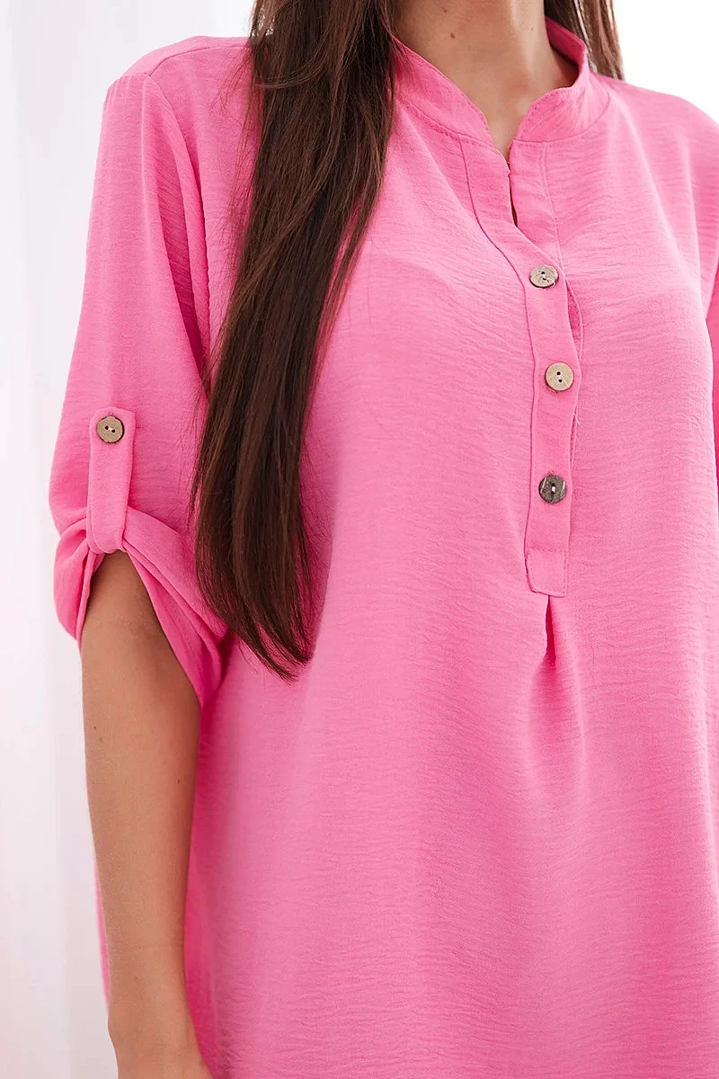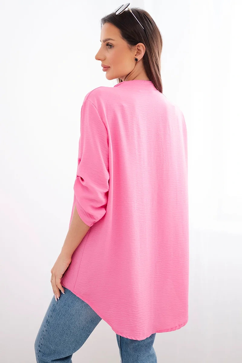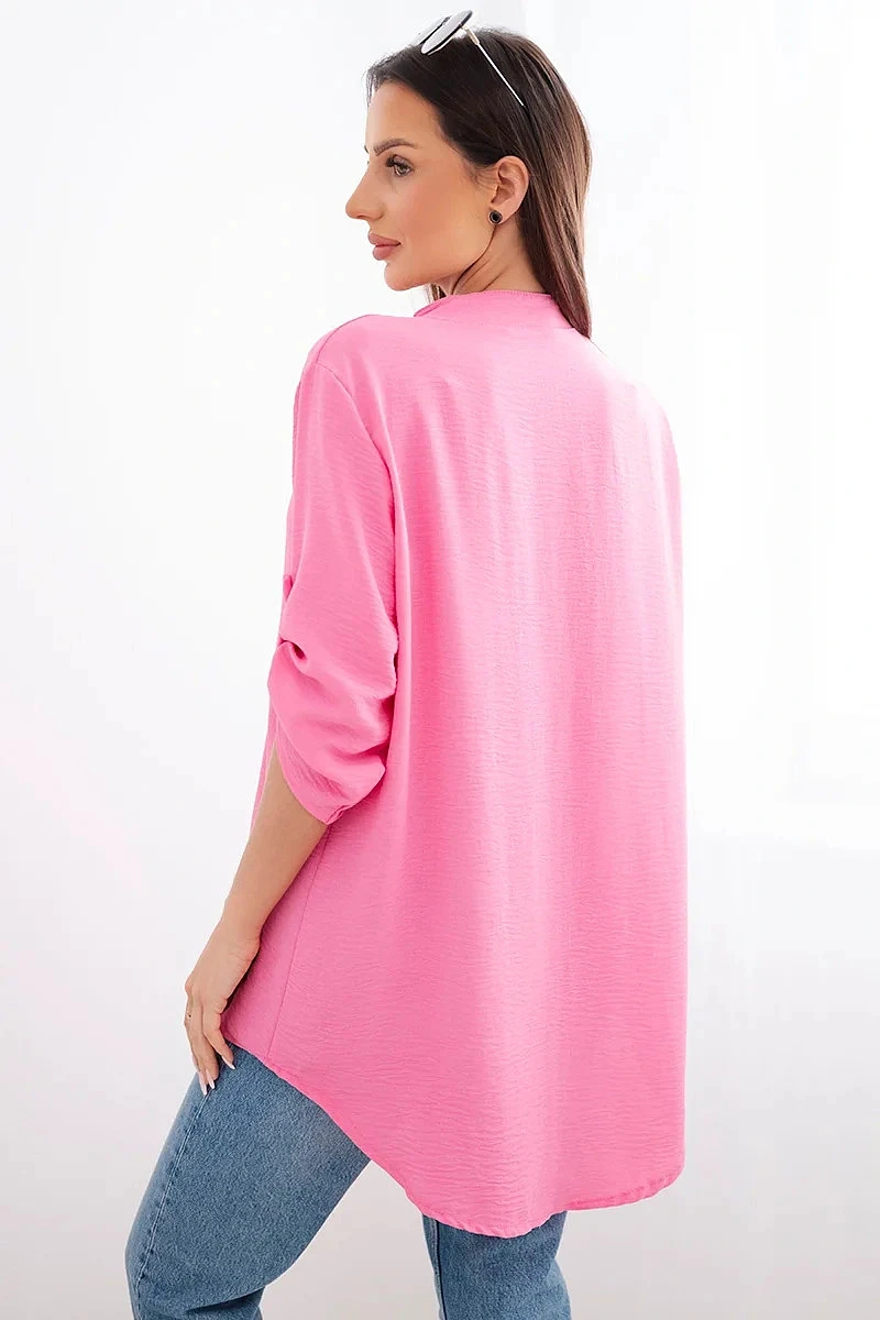 Objevte mimořádnou eleganci a pohodlí v prezentované halence s delšími zády, knoflíkovým výstřihem a ohrnutými rukávy, tato halenka nejen vypadá výjimečně stylově, ale poskytuje také bezkonkurenční funkčnost. Ciťte se sebevědomě a elegantně v halence, která podtrhne váš jedinečný styl. Díky delším zadním dílům vytvoříte jemné a módně nepravidelné proporce a knoflíkový výstřih vám umožní upravit si halenku podle vašich preferencí. Vyhrnuté rukávy dodávají halence lehkost a ležérní charakter, ideální pro různé příležitosti. Ať už se jedná o obchodní jednání nebo relaxační kávu s přáteli, naše halenka vám poskytne pohodlí a styl v jednom. Nenechte si ujít příležitost přidat do svého šatníku tuto jedinečnou halenku! Objevte eleganci, pohodlí a funkčnost v jednom a zdůrazněte svůj jedinečný styl ještě dnes. Velikost je univerzální a bude vhodná pro ženy, které nosí velikost S, M nebo L.