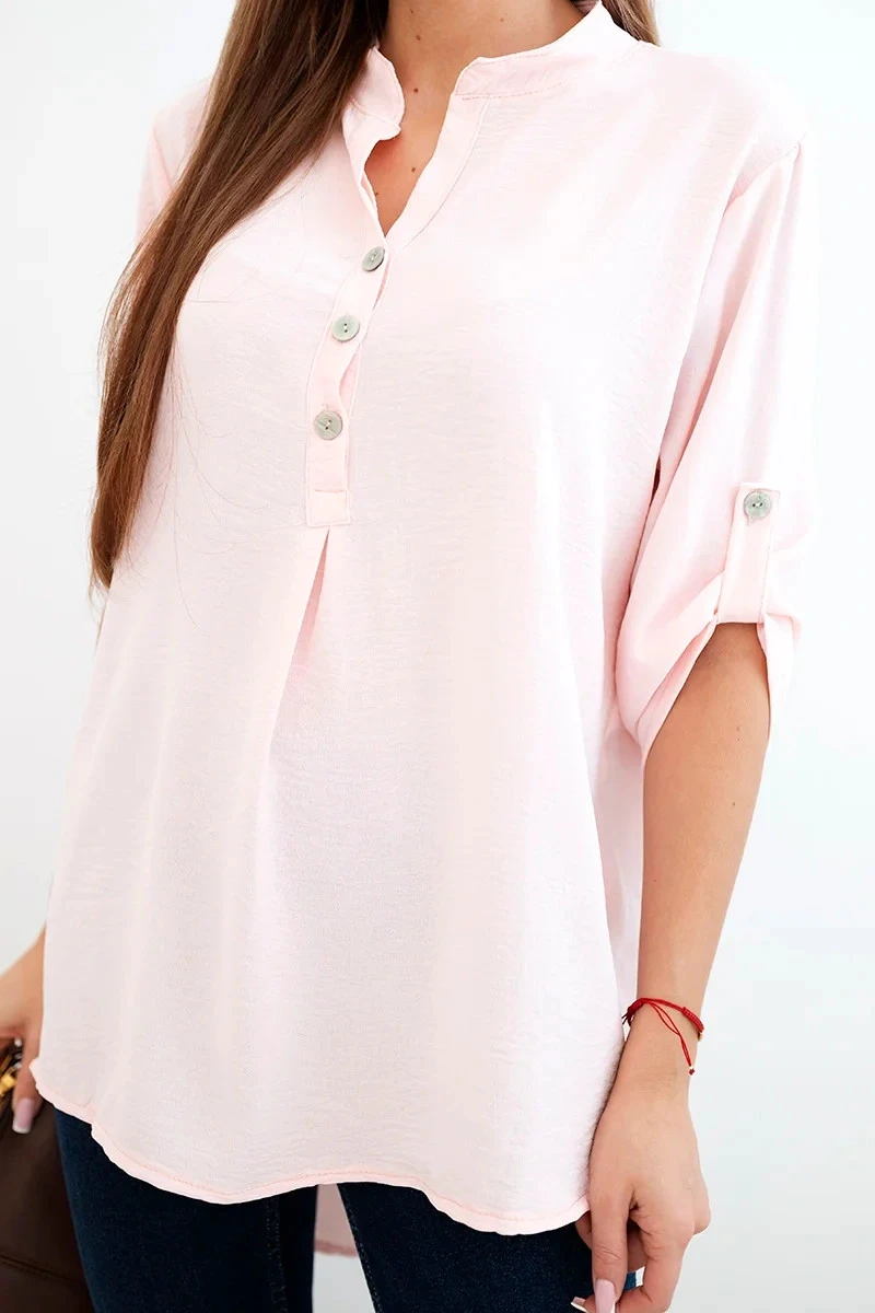 Objevte mimořádnou eleganci a pohodlí v prezentované halence s delšími zády, knoflíkovým výstřihem a ohrnutými rukávy, tato halenka nejen vypadá výjimečně stylově, ale poskytuje také bezkonkurenční funkčnost. Ciťte se sebevědomě a elegantně v halence, která podtrhne váš jedinečný styl. Díky delším zadním dílům vytvoříte jemné a módně nepravidelné proporce a knoflíkový výstřih vám umožní upravit si halenku podle vašich preferencí. Vyhrnuté rukávy dodávají halence lehkost a ležérní charakter, ideální pro různé příležitosti. Ať už se jedná o obchodní jednání nebo relaxační kávu s přáteli, naše halenka vám poskytne pohodlí a styl v jednom. Nenechte si ujít příležitost přidat do svého šatníku tuto jedinečnou halenku! Objevte eleganci, pohodlí a funkčnost v jednom a zdůrazněte svůj jedinečný styl ještě dnes. Velikost je univerzální a bude vhodná pro ženy, které nosí velikost S, M nebo L.