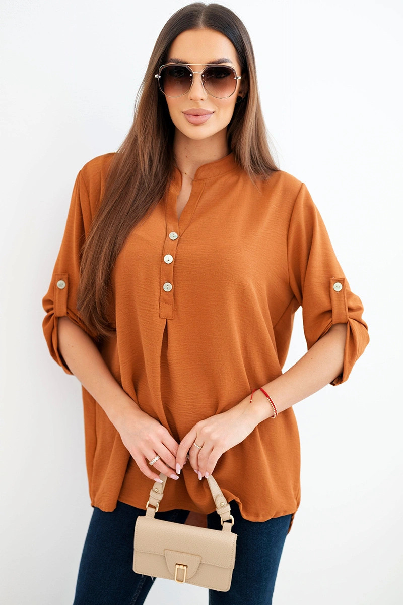 Halenka s delším zadním dílem tmavě camelová