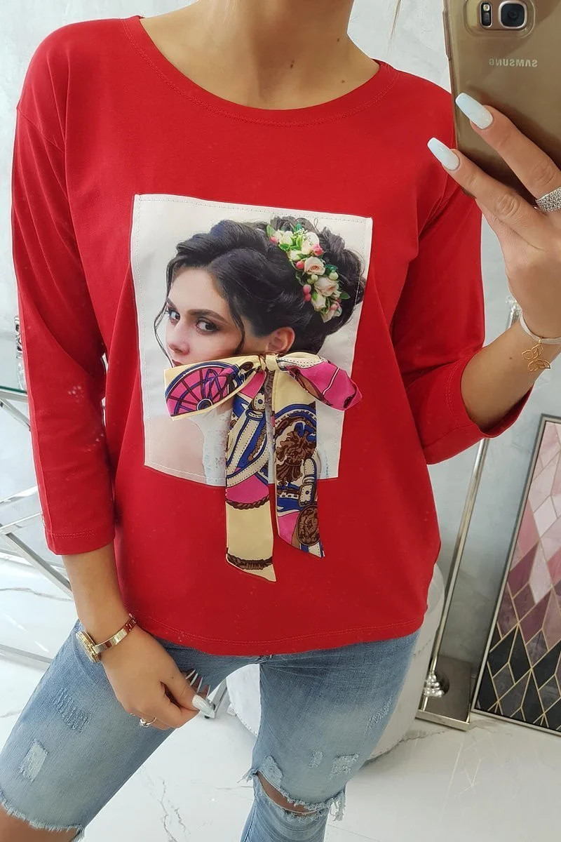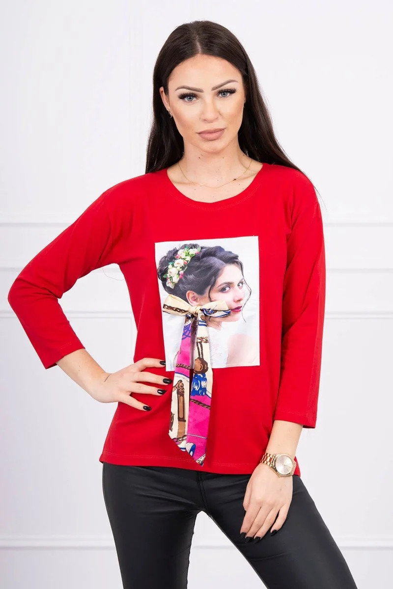 Přidání recenze k Halenka s grafickou a barevnou 3D mašlí červená