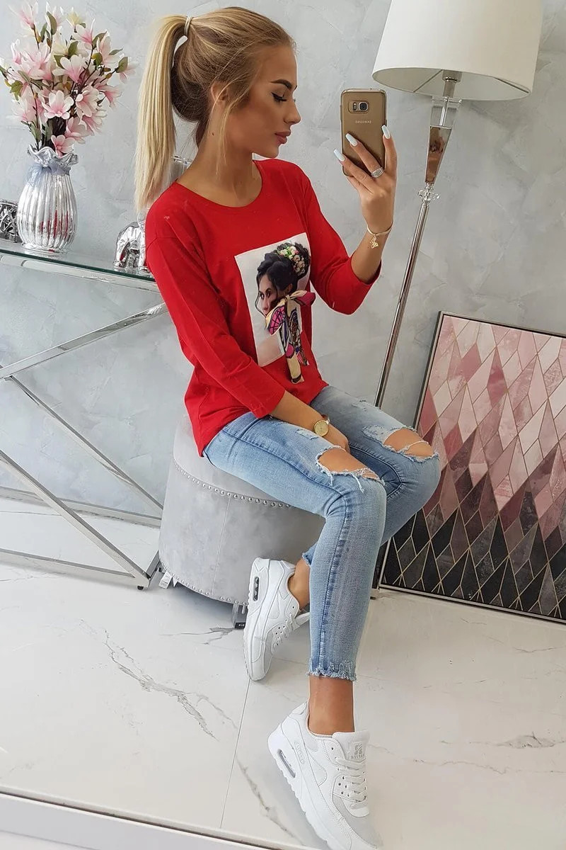 Představujeme vám módní halenku. Halenka má našitou grafiku s barevnou mašlí. Tato halenka se vyznačuje módním designem a precizním zpracováním. Ve vašem šatníku rozhodně nesmí chybět. Halenka je vyrobena z vysoce kvalitního materiálu. Univerzální velikost je vhodná pro dámy, které nosí každodenní oblečení ve velikostech S, M nebo L.