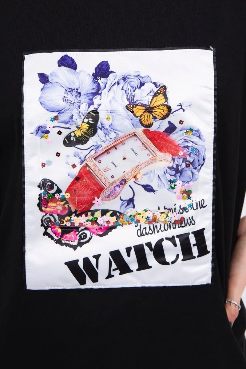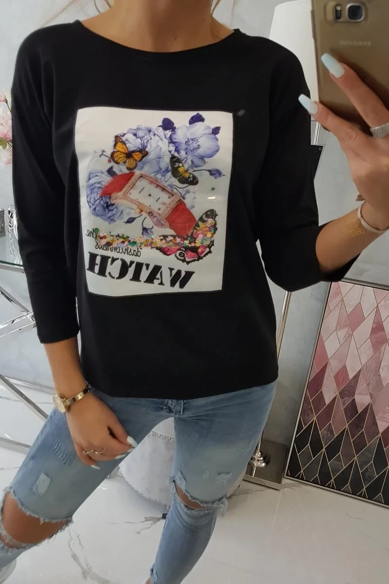 Halenka s grafikou 3D Watch černá
