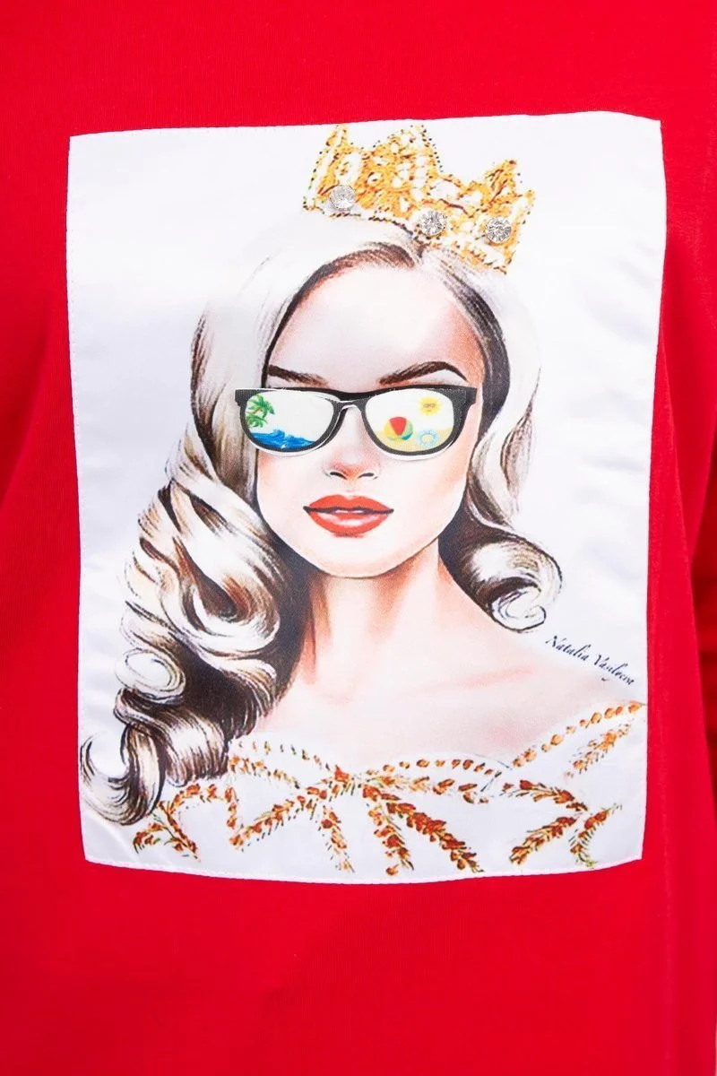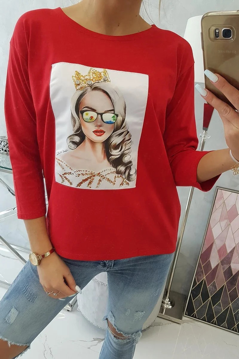 Halenka s grafikou dívky v 3D brýlích červená