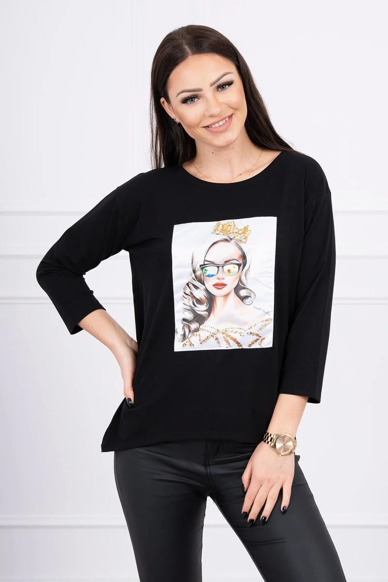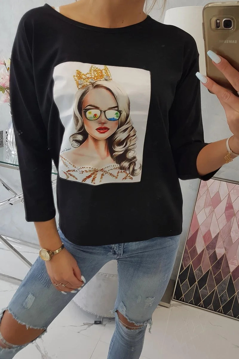 Přidání recenze k Halenka s grafikou dívky ve 3D model 18743940 černá - K-Fashion