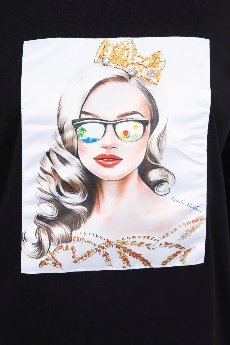 Halenka s grafikou dívky ve 3D model 18743940 černá - K-Fashion