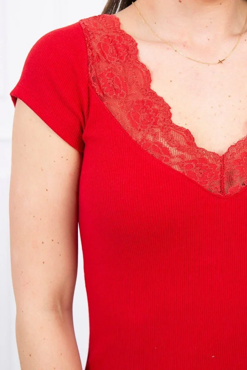 Halenka s krajkovým výstřihem červená