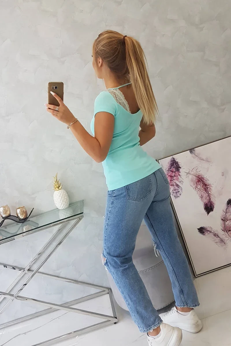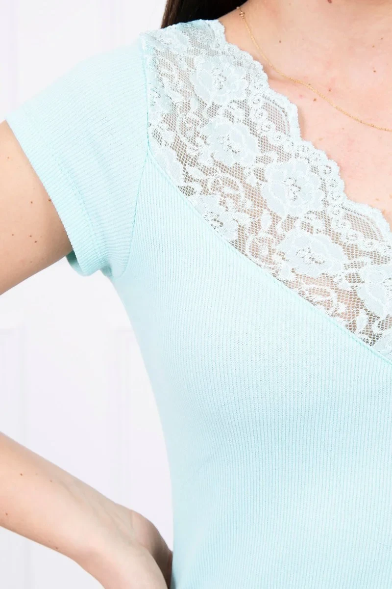 Přidání recenze k Halenka s krajkovým výstřihem mátová