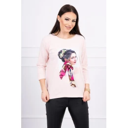 Halenka s model 18743936 a barevnou 3D mašlí pudrově růžová - K-Fashion