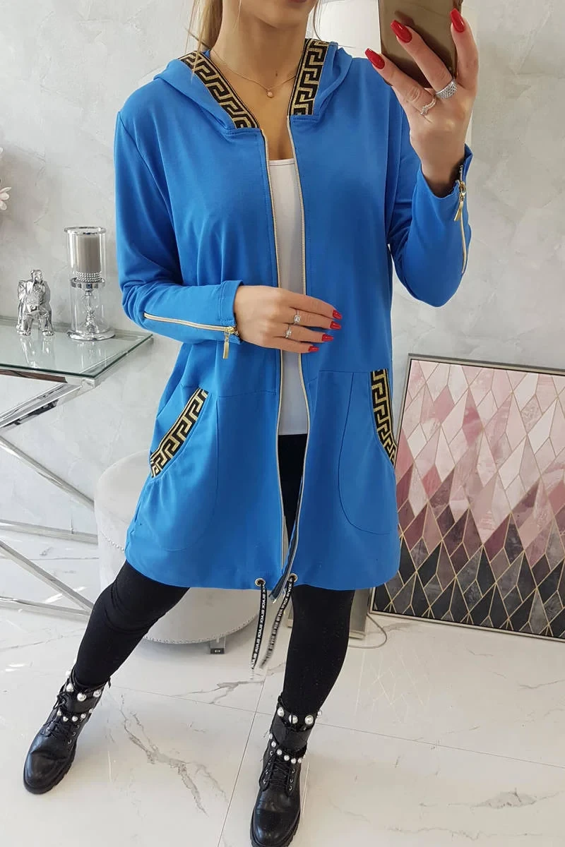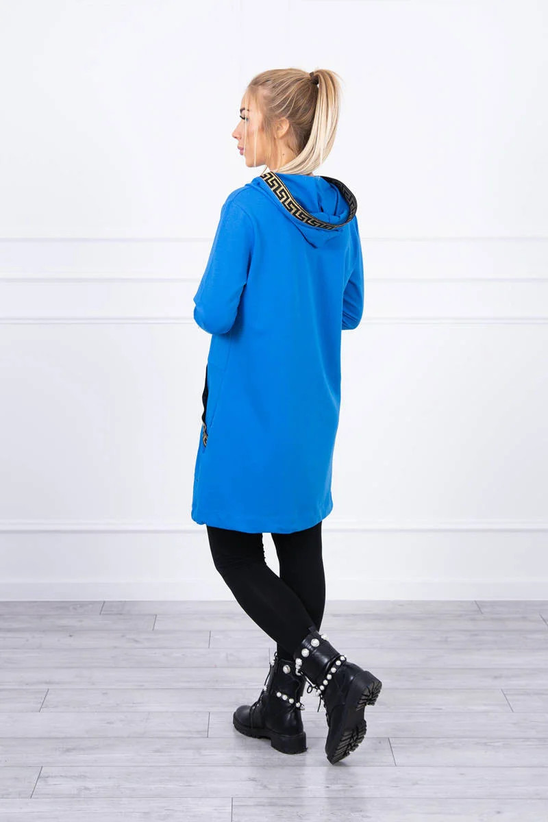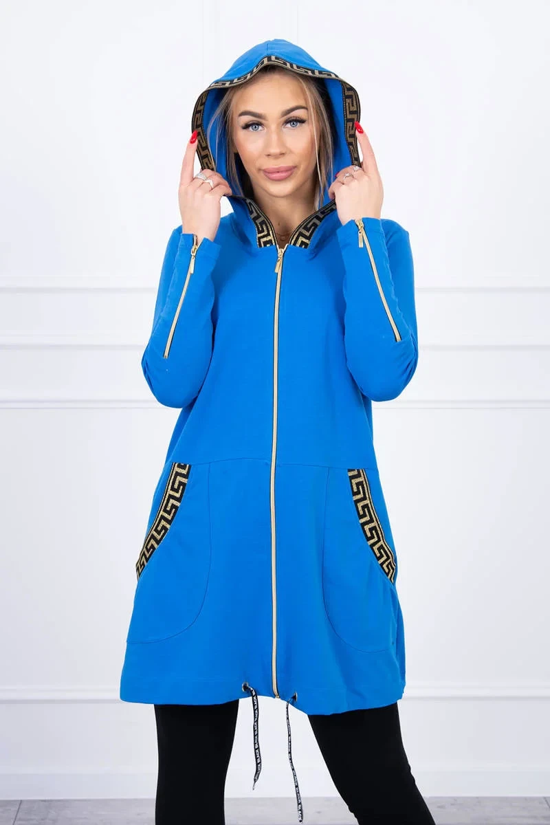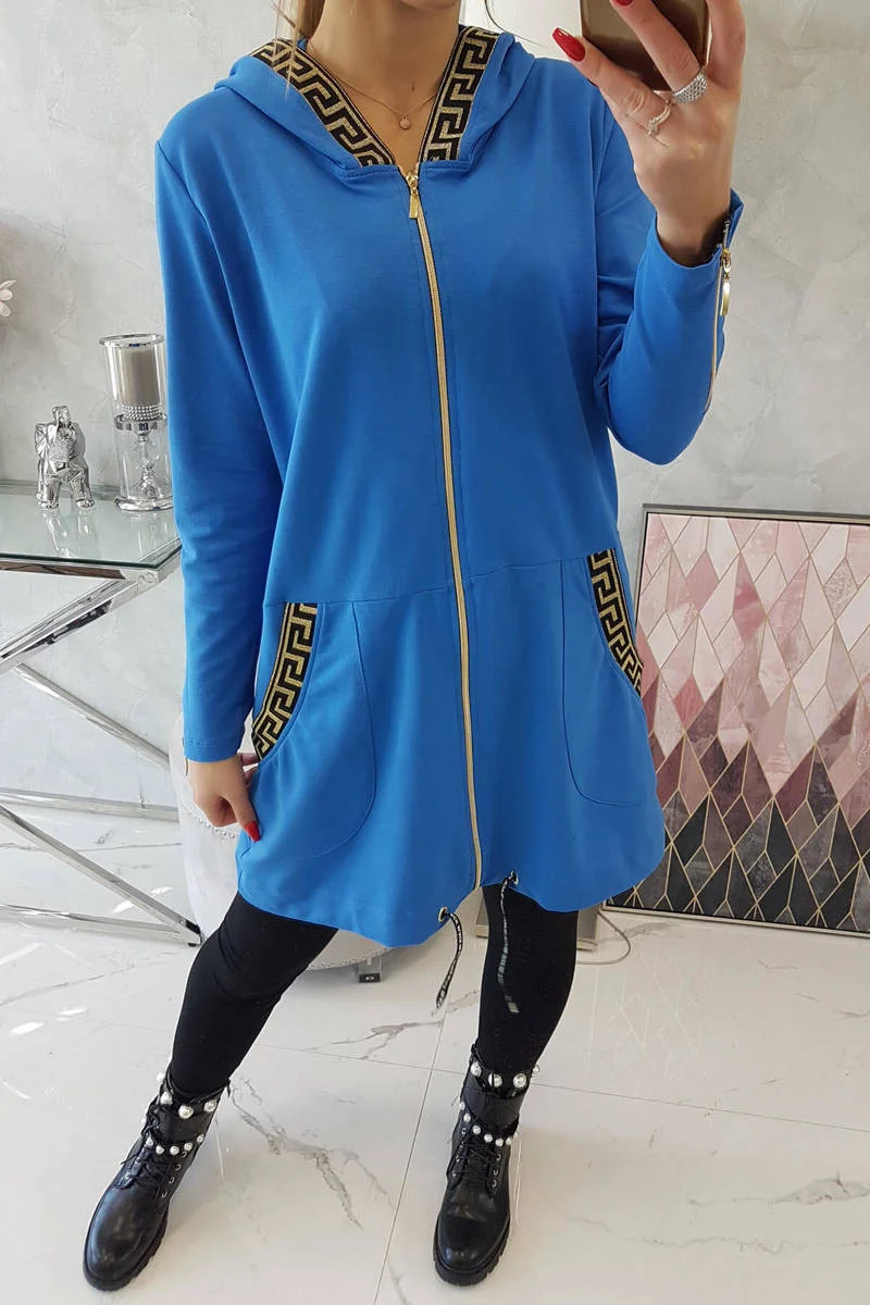 Představujeme vám pohodlnou dlouhou mikinu s kapucí. Mikina má zapínání na zip a ozdobné stuhy na kapsách a kapuci. Mikina je vyrobena z vysoce kvalitního materiálu. Velikost je univerzální a vyhovuje dámám, které nosí velikost S, M nebo L.