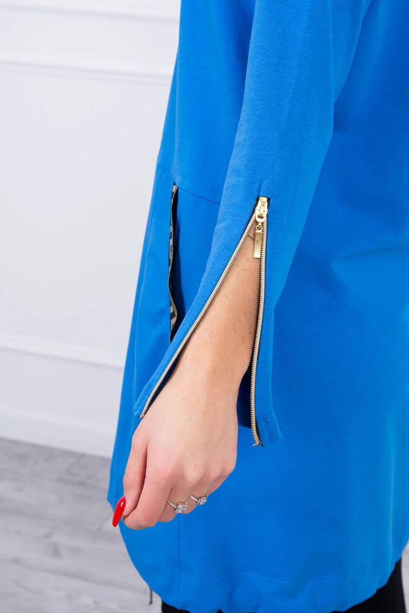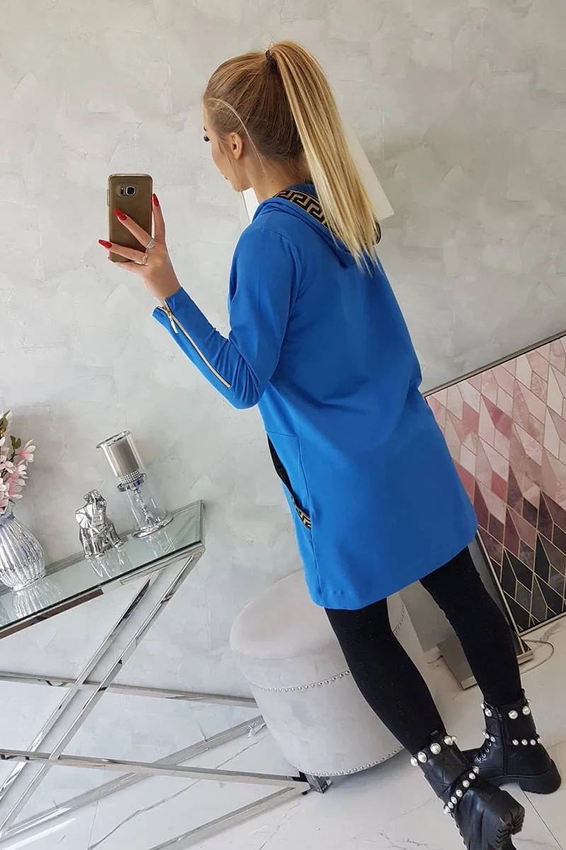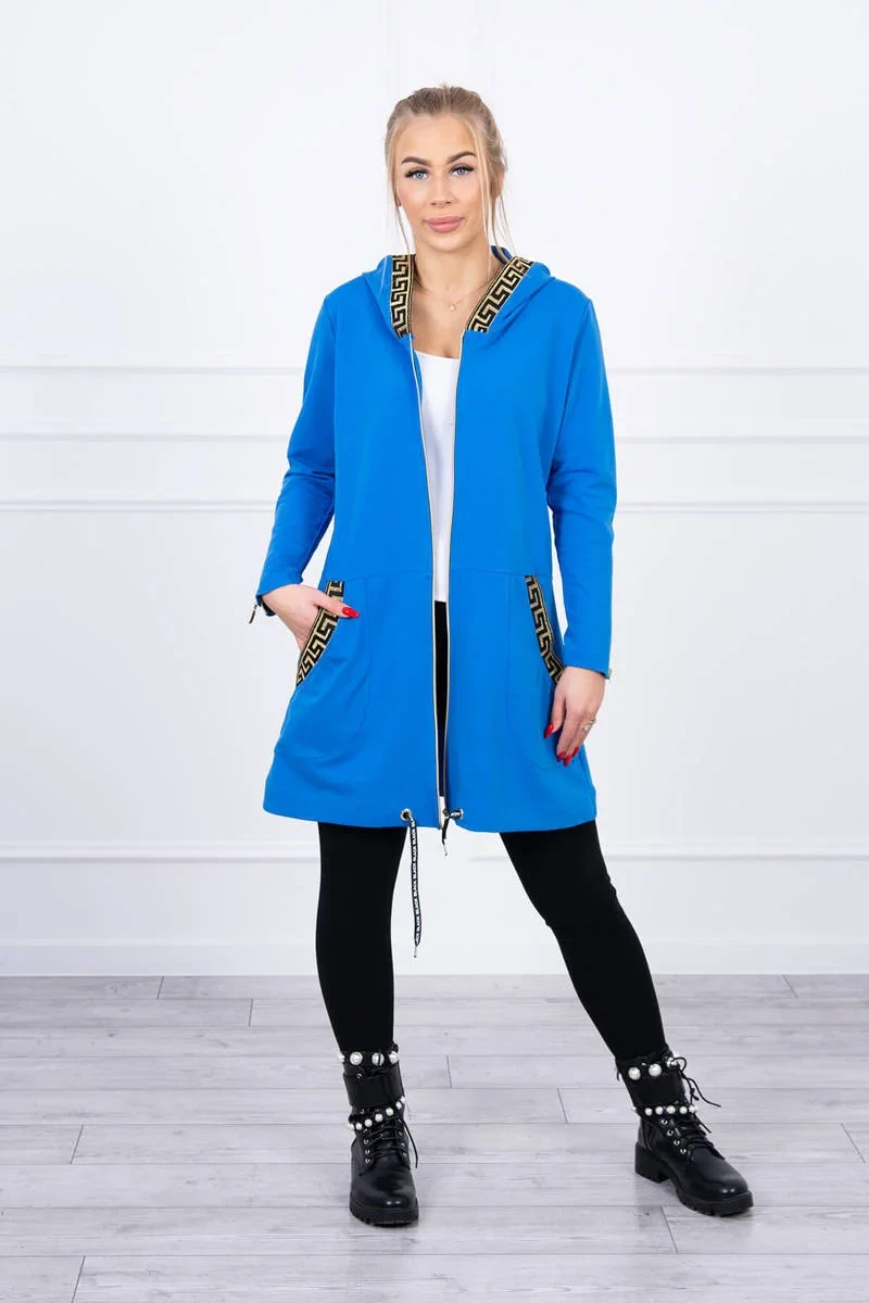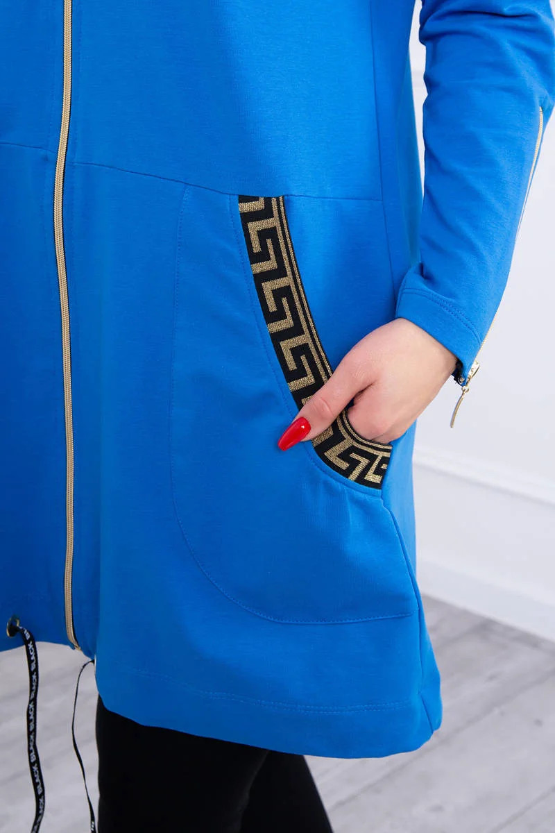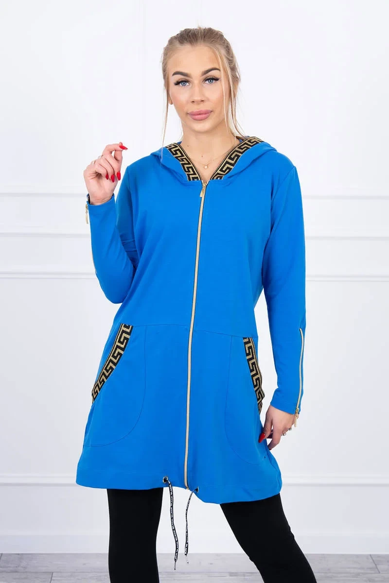 Představujeme vám pohodlnou dlouhou mikinu s kapucí. Mikina má zapínání na zip a ozdobné stuhy na kapsách a kapuci. Mikina je vyrobena z vysoce kvalitního materiálu. Velikost je univerzální a vyhovuje dámám, které nosí velikost S, M nebo L.