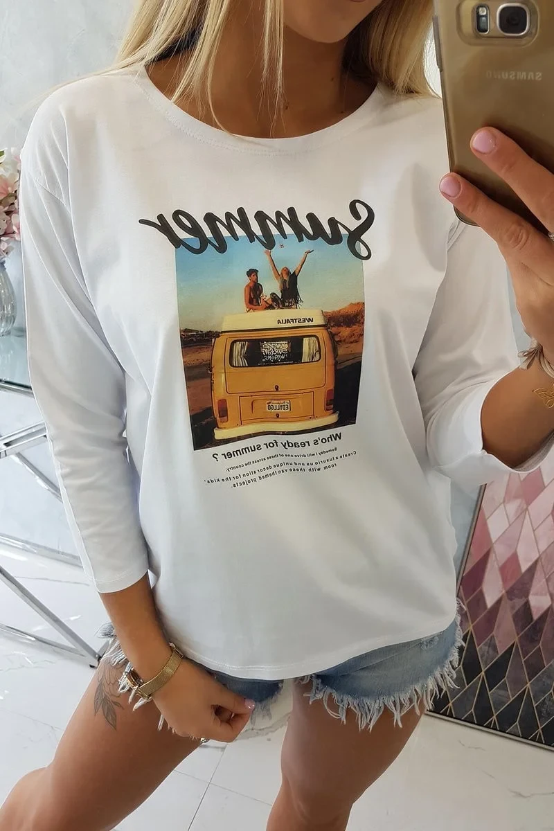 Halenka s potiskem Letní auto bílá