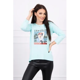 Halenka s potiskem model 18744196 v mátové barvě - K-Fashion
