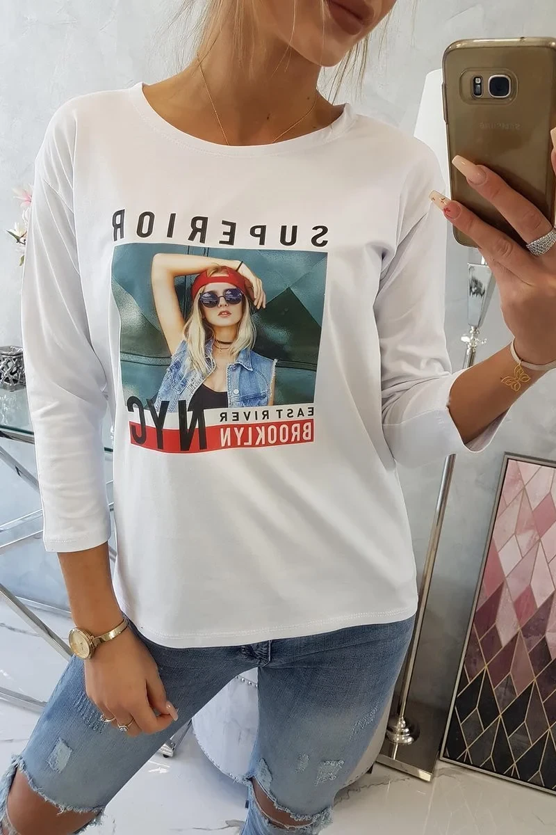 Halenka s potiskem model 18744202 bílá - K-Fashion