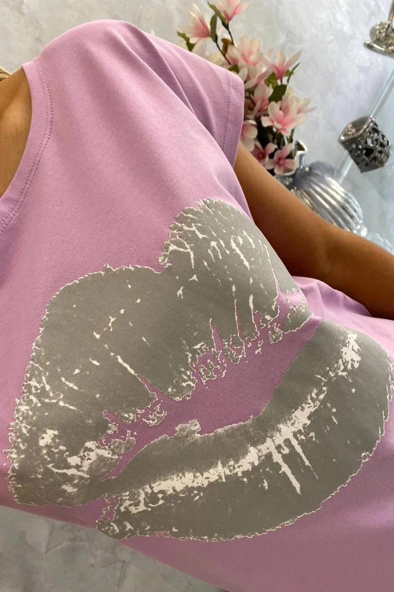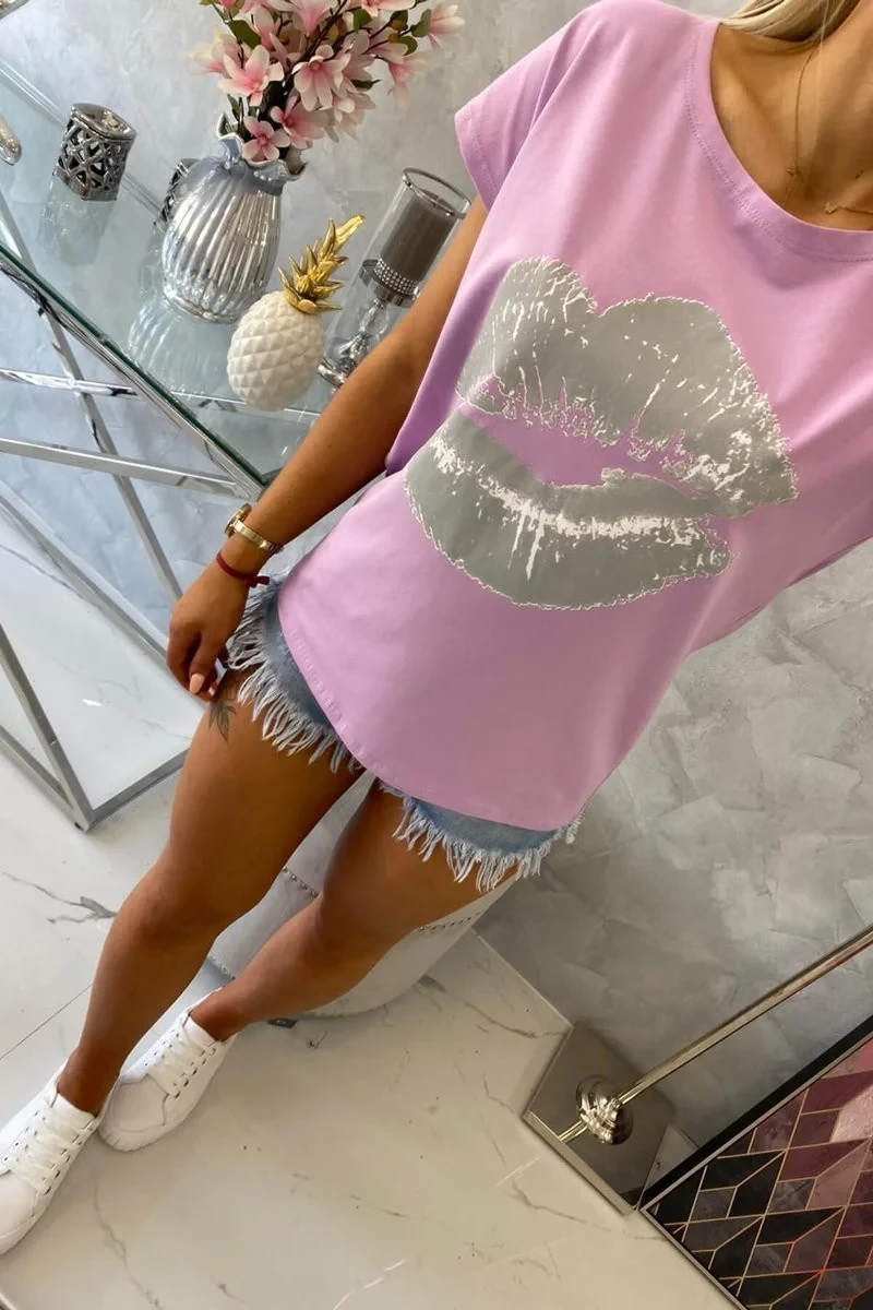 Představujeme vám módní halenku. Halenka s potiskem rtů. Halenka s krátkým rukávem. Super grafika na tričku. Halenka ideální na léto s šortkami. Halenka je vyrobena z vysoce kvalitního materiálu. Velikost je univerzální a vyhovuje dámám, které nosí velikost S, M nebo L.
