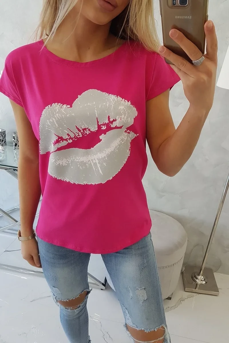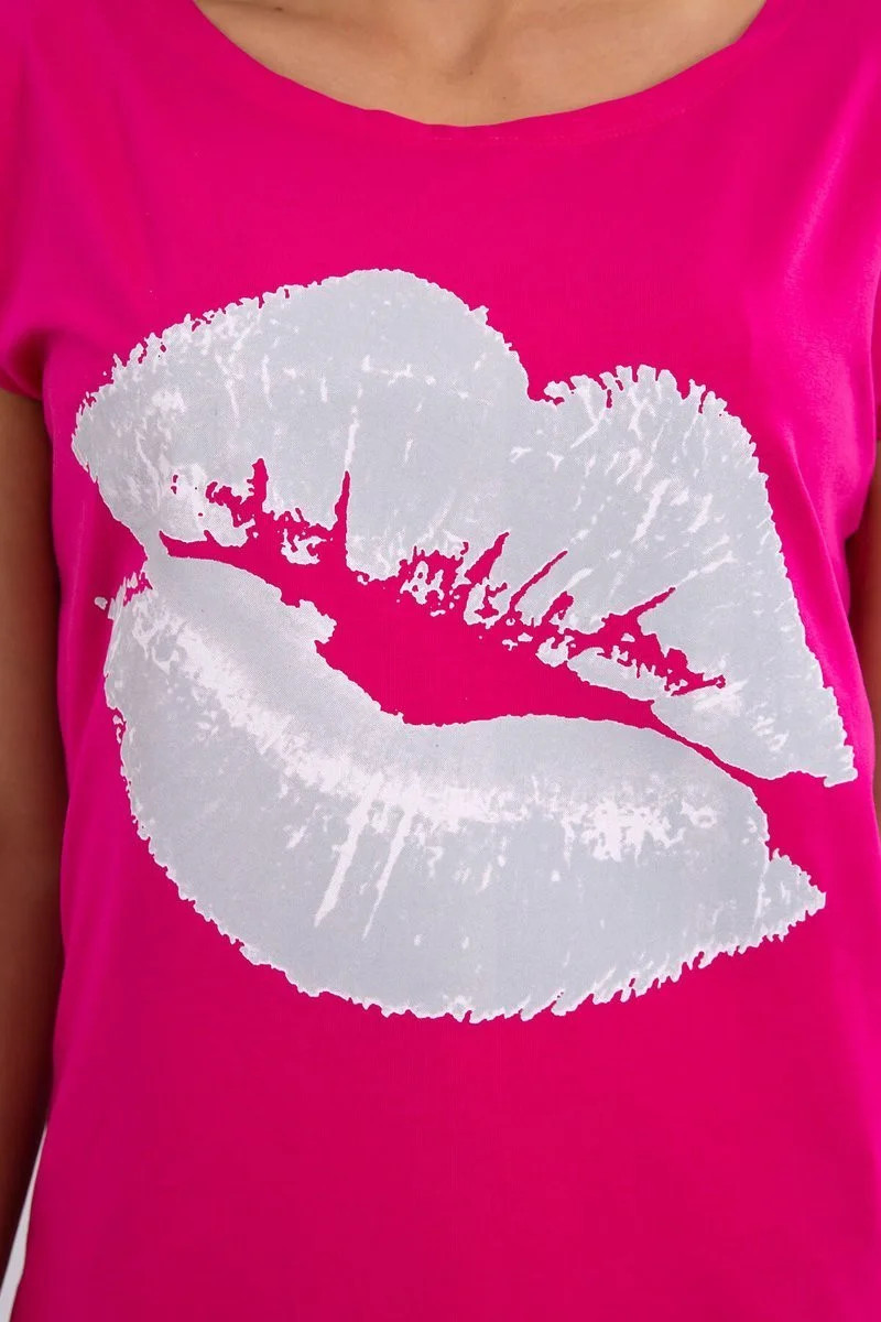 Halenka s potiskem rtů fuchsiová