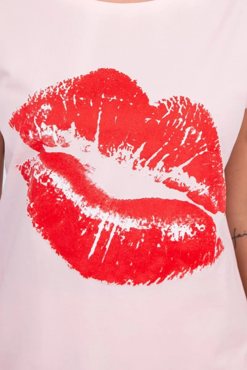 Halenka s potiskem rtů, pudrově růžová