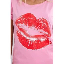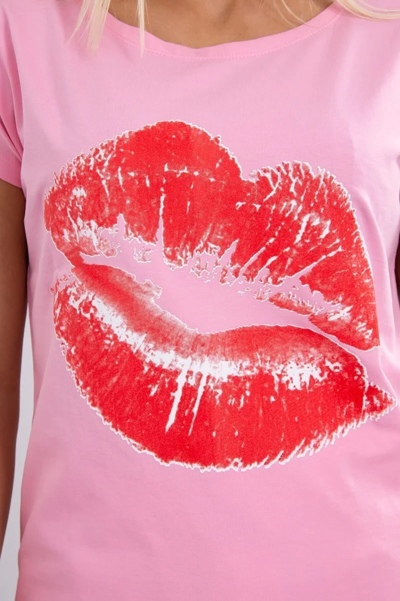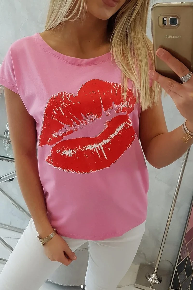 Halenka s potiskem rtů světle růžová