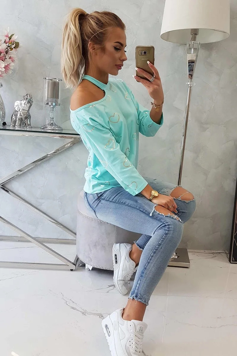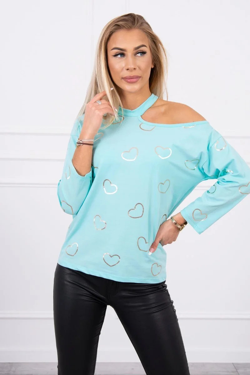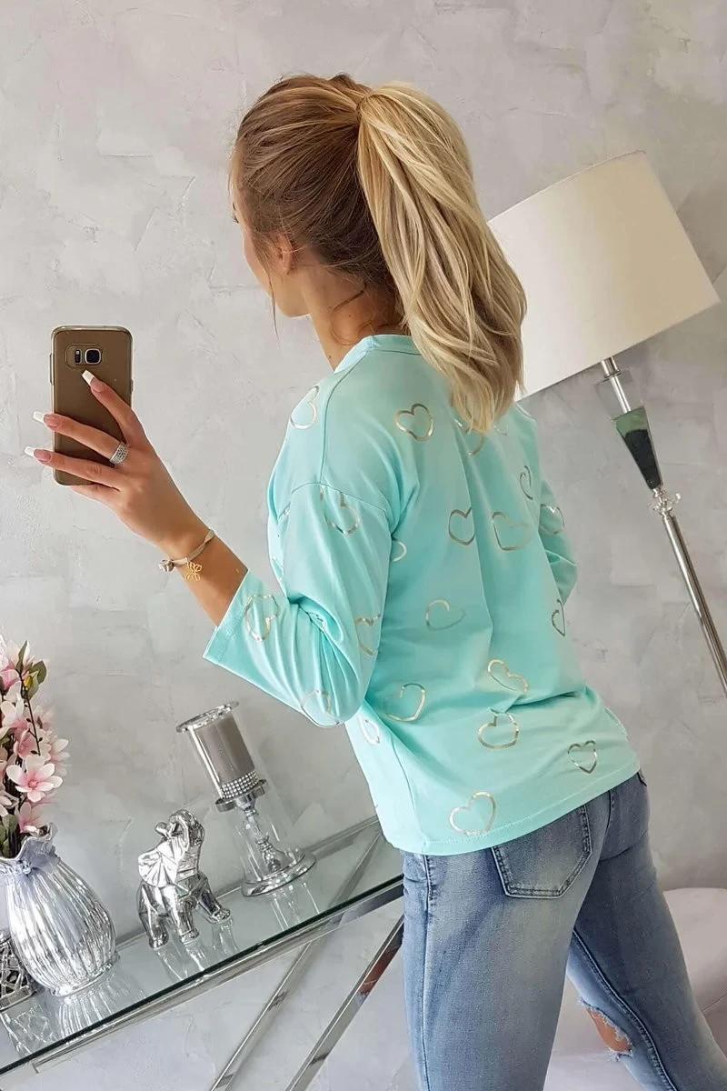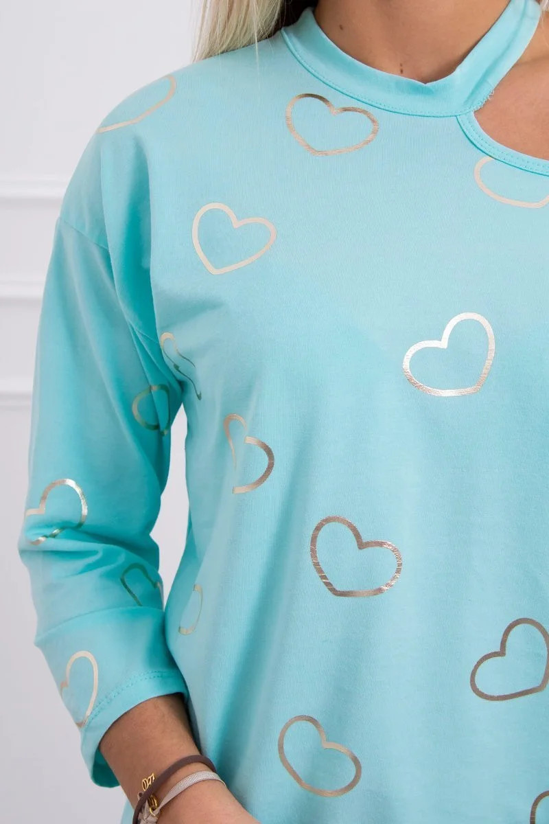 Přidání recenze k Halenka s potiskem srdce v mátové barvě