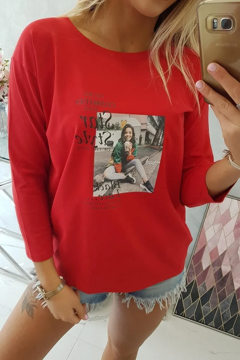 Halenka s potiskem Star Style červená