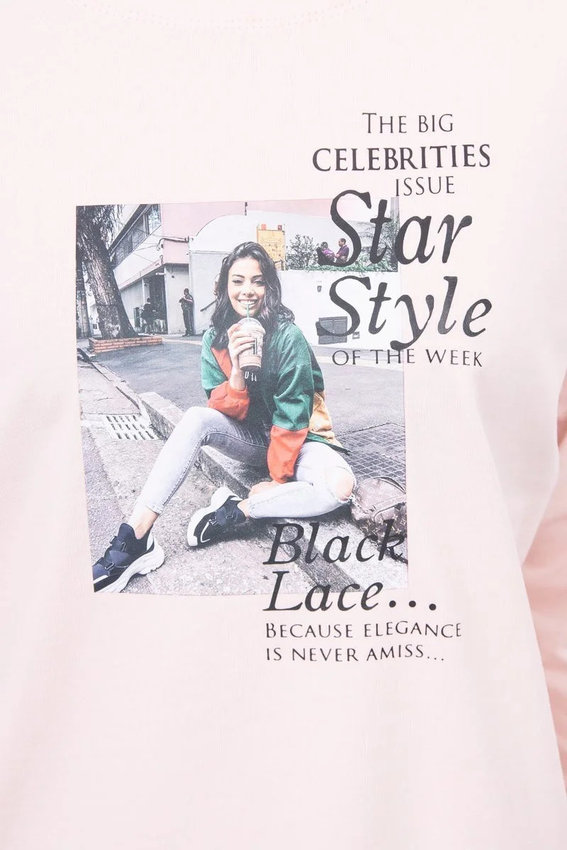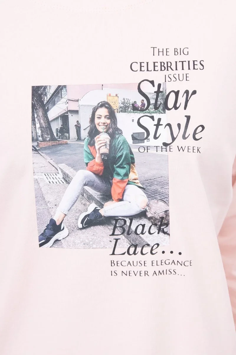 Přidání recenze k Halenka s potiskem Star Style v pudrově růžové barvě