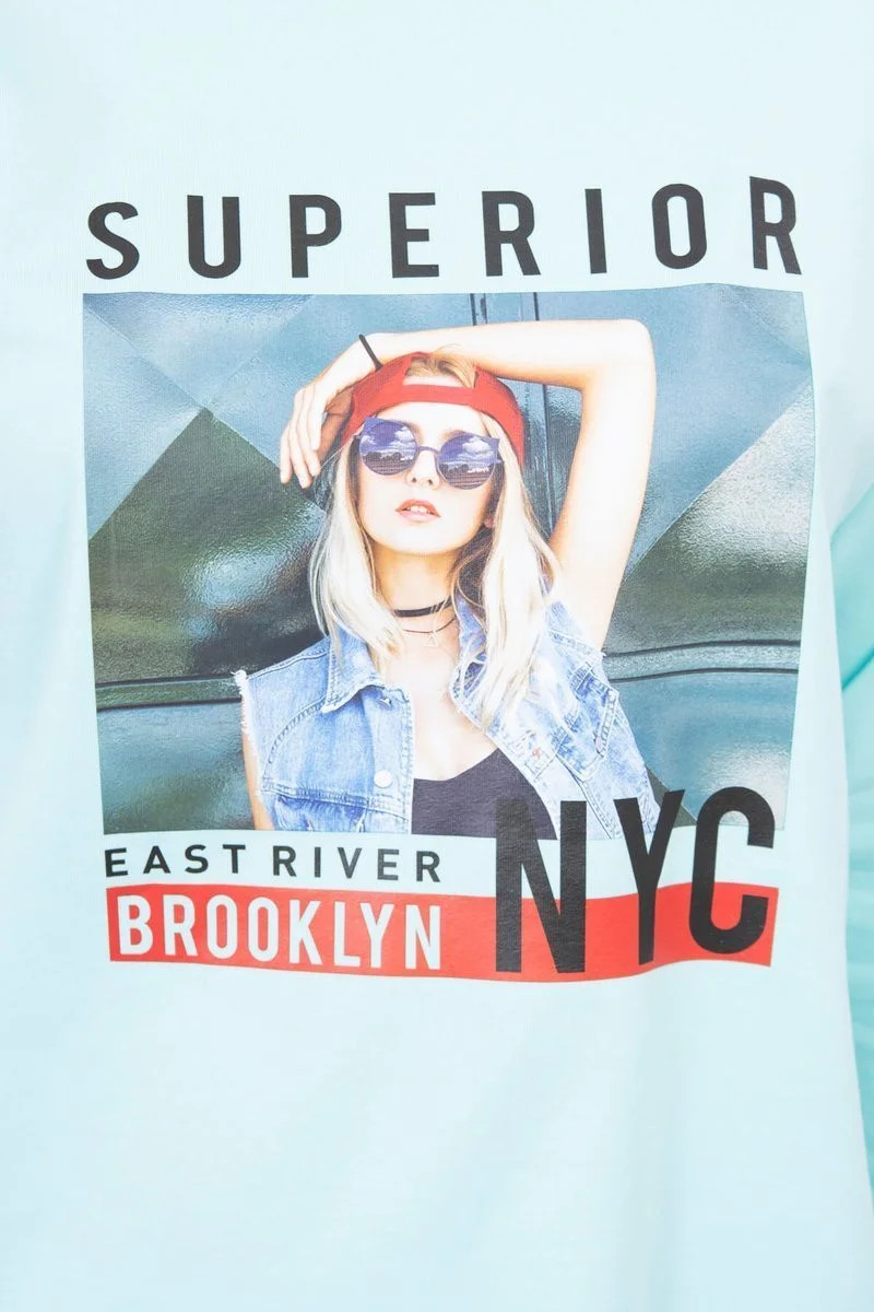 Halenka s potiskem Superior v mátové barvě