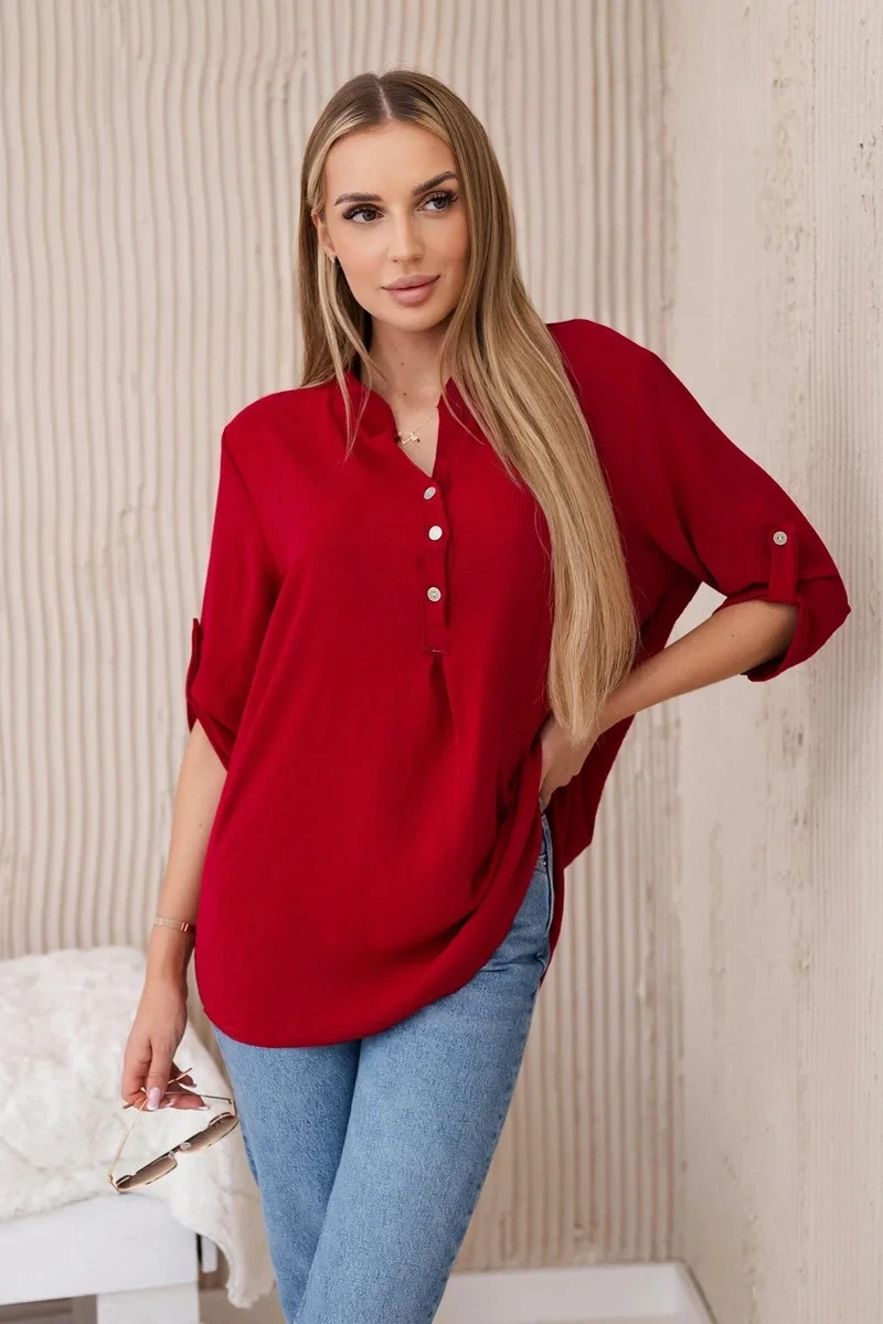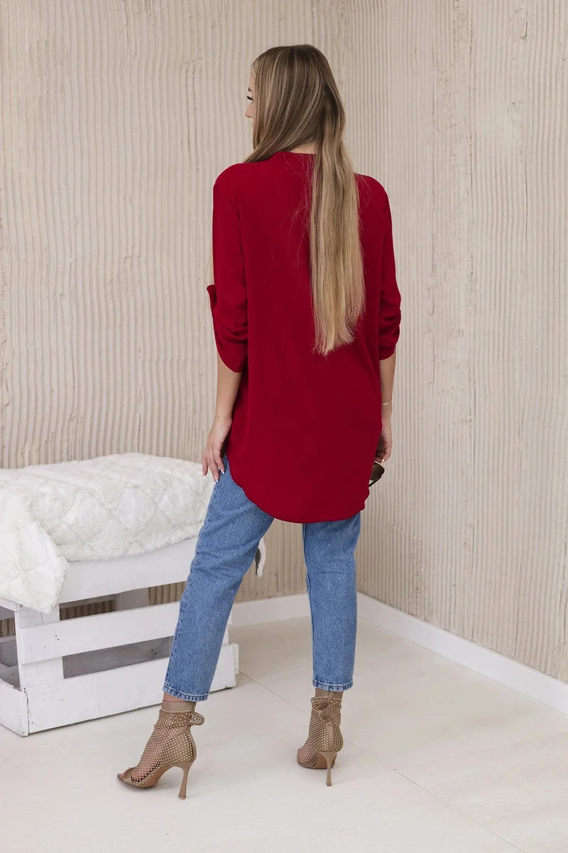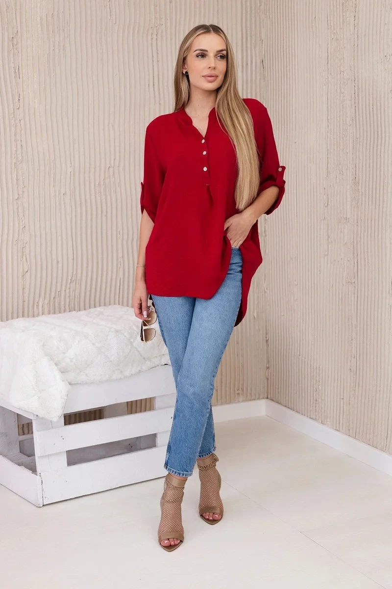 Objevte mimořádnou eleganci a pohodlí v prezentované halence s delšími zády, knoflíkovým výstřihem a ohrnutými rukávy, tato halenka nejen vypadá výjimečně stylově, ale poskytuje také bezkonkurenční funkčnost. Ciťte se sebevědomě a elegantně v halence, která podtrhne váš jedinečný styl. Díky delším zadním dílům vytvoříte jemné a módně nepravidelné proporce a knoflíkový výstřih vám umožní upravit si halenku podle vašich preferencí. Vyhrnuté rukávy dodávají halence lehkost a ležérní charakter, ideální pro různé příležitosti. Ať už se jedná o obchodní jednání nebo relaxační kávu s přáteli, naše halenka vám poskytne pohodlí a styl v jednom. Nenechte si ujít příležitost přidat do svého šatníku tuto jedinečnou halenku! Objevte eleganci, pohodlí a funkčnost v jednom a zdůrazněte svůj jedinečný styl ještě dnes. Velikost je univerzální a bude vhodná pro ženy, které nosí velikost S, M nebo L.