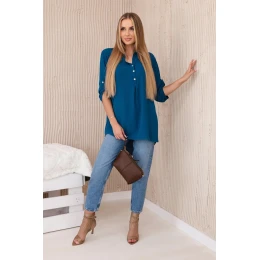 Objevte mimořádnou eleganci a pohodlí v prezentované halence s delšími zády, knoflíkovým výstřihem a ohrnutými rukávy, tato halenka nejen vypadá výjimečně stylově, ale poskytuje také bezkonkurenční funkčnost. Ciťte se sebevědomě a elegantně v halence, která podtrhne váš jedinečný styl. Díky delším zadním dílům vytvoříte jemné a módně nepravidelné proporce a knoflíkový výstřih vám umožní upravit si halenku podle vašich preferencí. Vyhrnuté rukávy dodávají halence lehkost a ležérní charakter, ideální pro různé příležitosti. Ať už se jedná o obchodní jednání nebo relaxační kávu s přáteli, naše halenka vám poskytne pohodlí a styl v jednom. Nenechte si ujít příležitost přidat do svého šatníku tuto jedinečnou halenku! Objevte eleganci, pohodlí a funkčnost v jednom a zdůrazněte svůj jedinečný styl ještě dnes. Velikost je univerzální a bude vhodná pro ženy, které nosí velikost S, M nebo L.