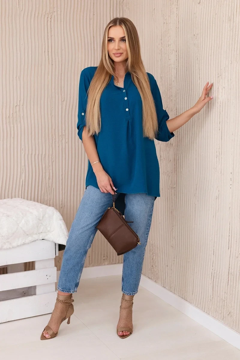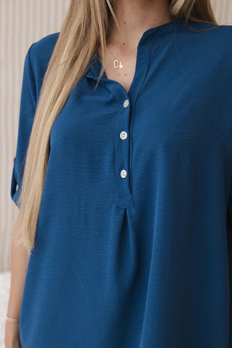 Objevte mimořádnou eleganci a pohodlí v prezentované halence s delšími zády, knoflíkovým výstřihem a ohrnutými rukávy, tato halenka nejen vypadá výjimečně stylově, ale poskytuje také bezkonkurenční funkčnost. Ciťte se sebevědomě a elegantně v halence, která podtrhne váš jedinečný styl. Díky delším zadním dílům vytvoříte jemné a módně nepravidelné proporce a knoflíkový výstřih vám umožní upravit si halenku podle vašich preferencí. Vyhrnuté rukávy dodávají halence lehkost a ležérní charakter, ideální pro různé příležitosti. Ať už se jedná o obchodní jednání nebo relaxační kávu s přáteli, naše halenka vám poskytne pohodlí a styl v jednom. Nenechte si ujít příležitost přidat do svého šatníku tuto jedinečnou halenku! Objevte eleganci, pohodlí a funkčnost v jednom a zdůrazněte svůj jedinečný styl ještě dnes. Velikost je univerzální a bude vhodná pro ženy, které nosí velikost S, M nebo L.