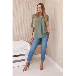 Objevte mimořádnou eleganci a pohodlí v prezentované halence s delšími zády, knoflíkovým výstřihem a ohrnutými rukávy, tato halenka nejen vypadá výjimečně stylově, ale poskytuje také bezkonkurenční funkčnost. Ciťte se sebevědomě a elegantně v halence, která podtrhne váš jedinečný styl. Díky delším zadním dílům vytvoříte jemné a módně nepravidelné proporce a knoflíkový výstřih vám umožní upravit si halenku podle vašich preferencí. Vyhrnuté rukávy dodávají halence lehkost a ležérní charakter, ideální pro různé příležitosti. Ať už se jedná o obchodní jednání nebo relaxační kávu s přáteli, naše halenka vám poskytne pohodlí a styl v jednom. Nenechte si ujít příležitost přidat do svého šatníku tuto jedinečnou halenku! Objevte eleganci, pohodlí a funkčnost v jednom a zdůrazněte svůj jedinečný styl ještě dnes. Velikost je univerzální a bude vhodná pro ženy, které nosí velikost S, M nebo L.