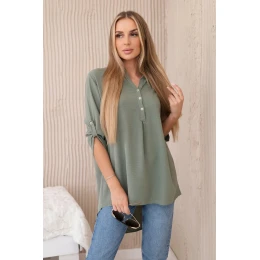 Objevte mimořádnou eleganci a pohodlí v prezentované halence s delšími zády, knoflíkovým výstřihem a ohrnutými rukávy, tato halenka nejen vypadá výjimečně stylově, ale poskytuje také bezkonkurenční funkčnost. Ciťte se sebevědomě a elegantně v halence, která podtrhne váš jedinečný styl. Díky delším zadním dílům vytvoříte jemné a módně nepravidelné proporce a knoflíkový výstřih vám umožní upravit si halenku podle vašich preferencí. Vyhrnuté rukávy dodávají halence lehkost a ležérní charakter, ideální pro různé příležitosti. Ať už se jedná o obchodní jednání nebo relaxační kávu s přáteli, naše halenka vám poskytne pohodlí a styl v jednom. Nenechte si ujít příležitost přidat do svého šatníku tuto jedinečnou halenku! Objevte eleganci, pohodlí a funkčnost v jednom a zdůrazněte svůj jedinečný styl ještě dnes. Velikost je univerzální a bude vhodná pro ženy, které nosí velikost S, M nebo L.