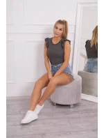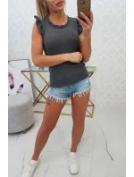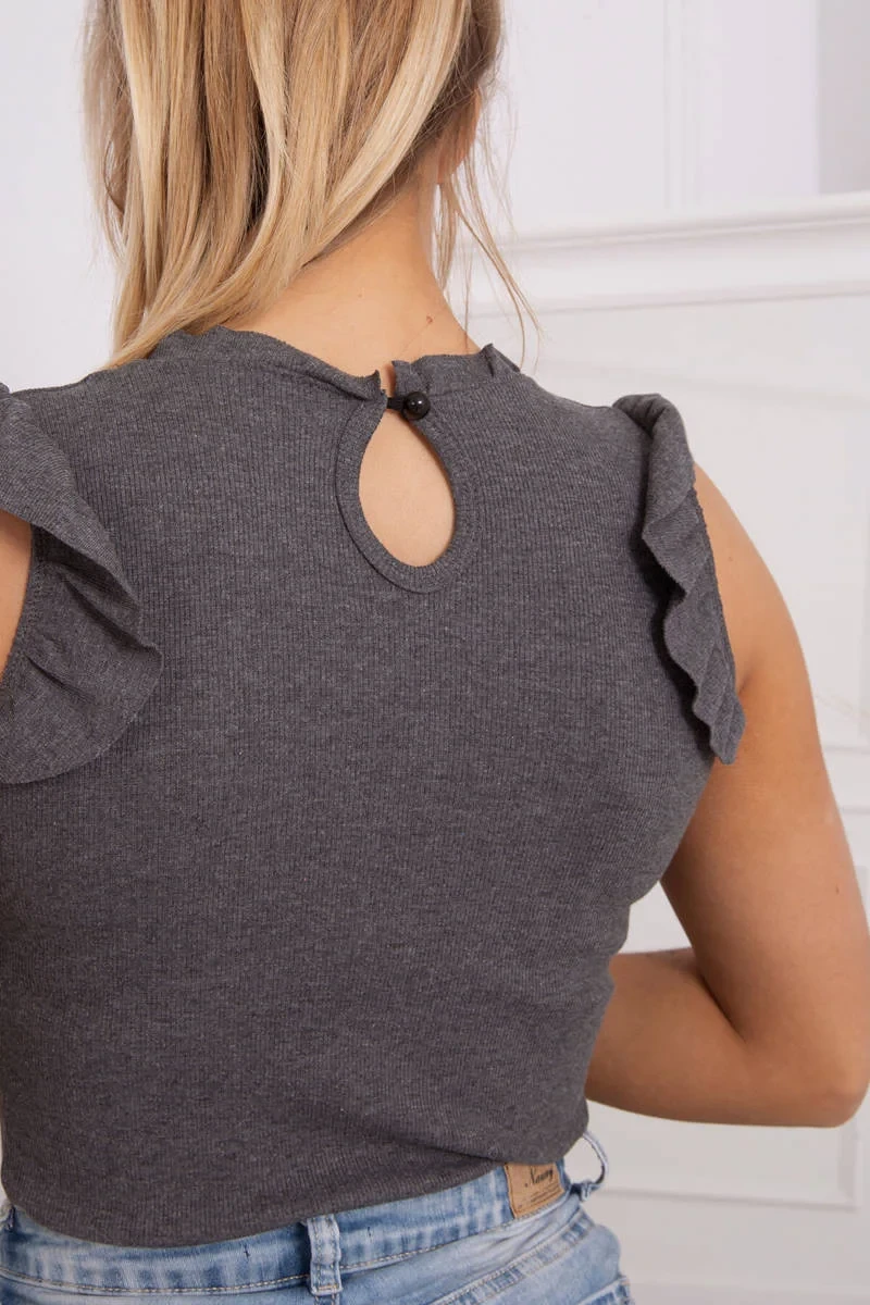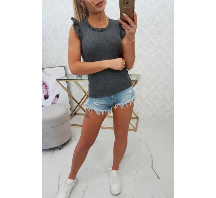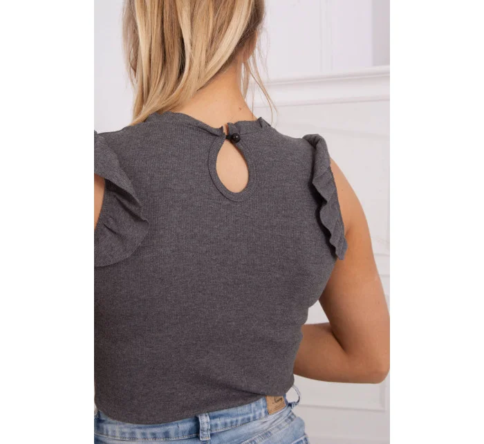 Třpytivá halenka s volánky grafitová
