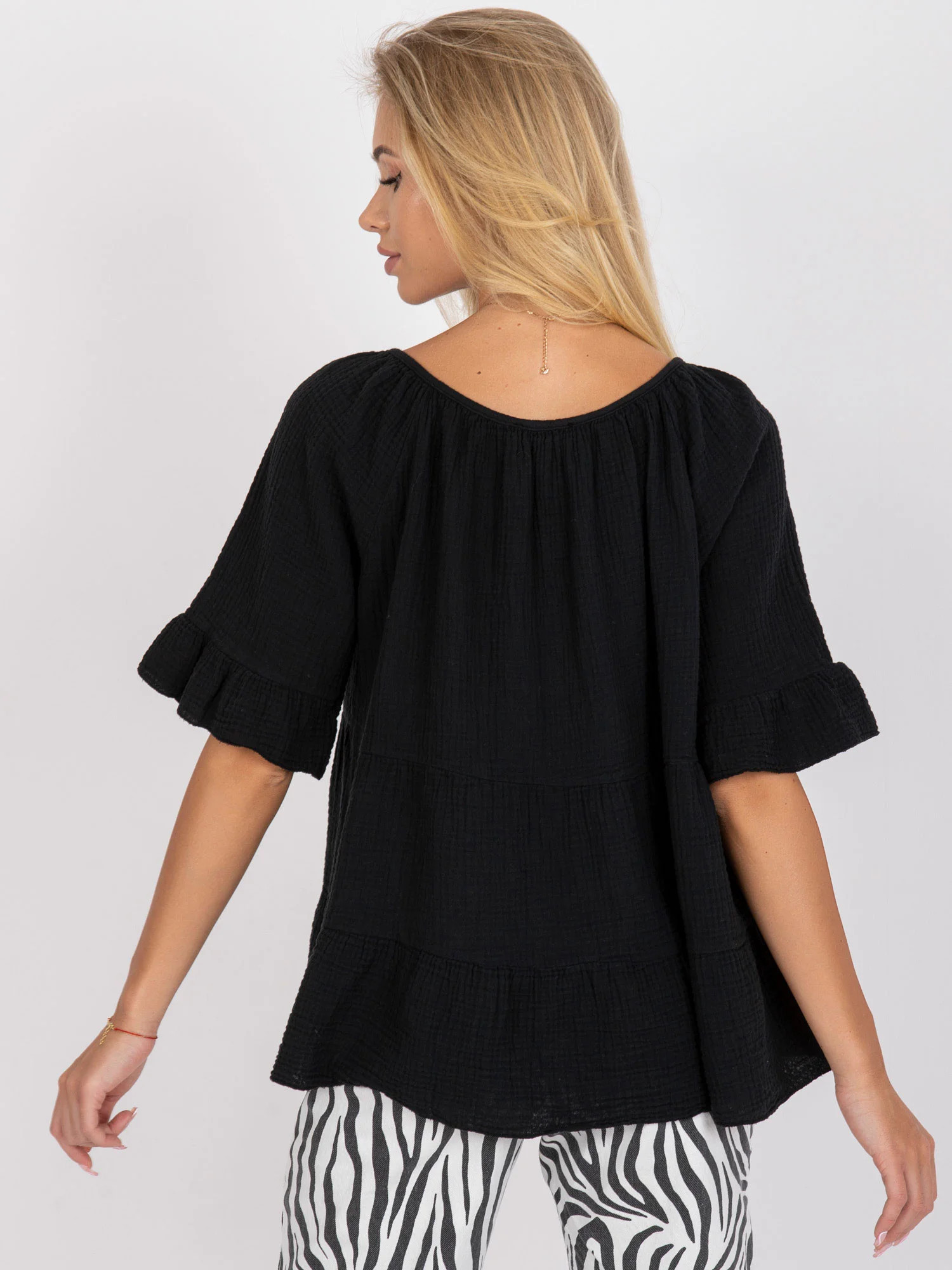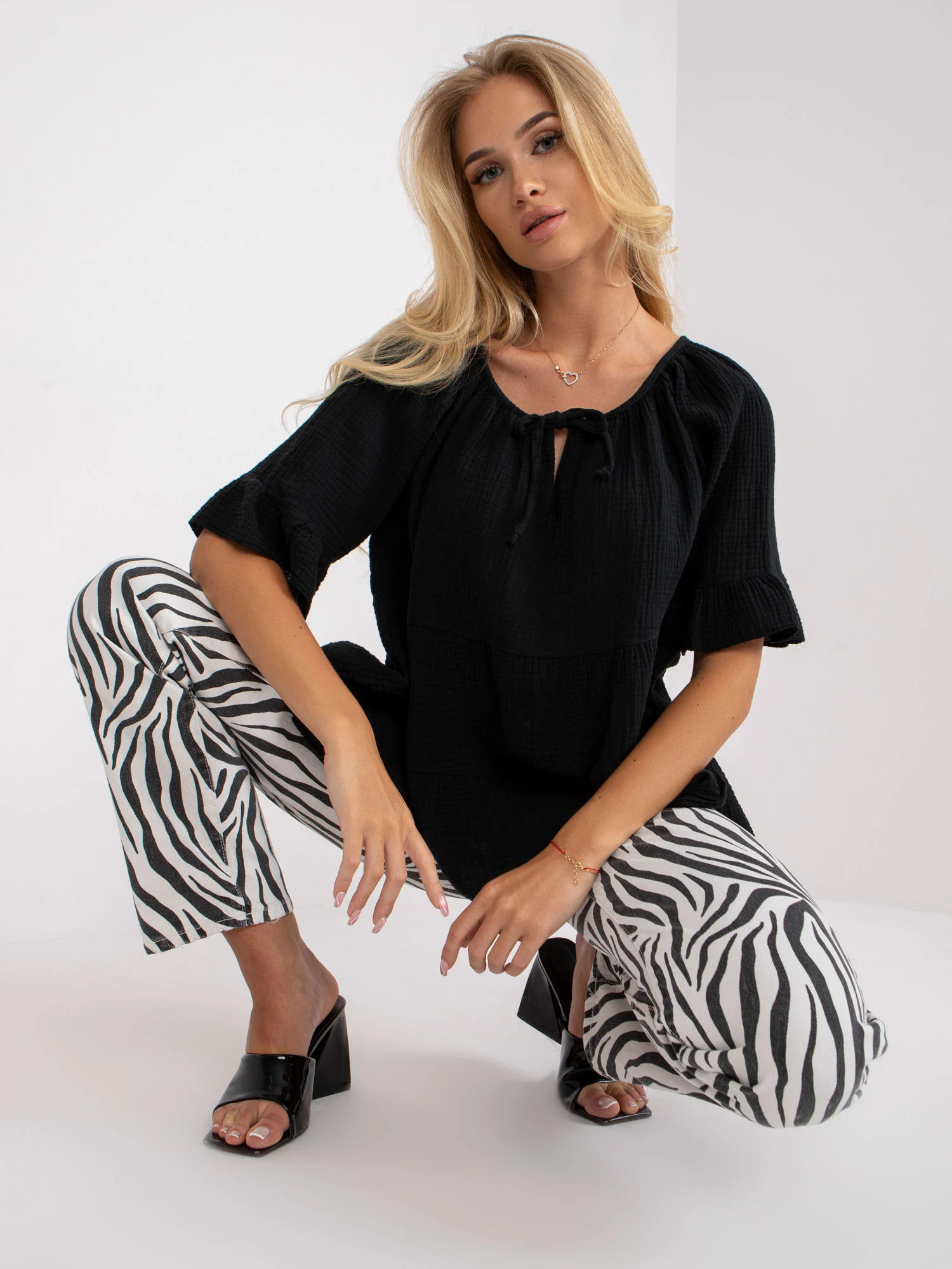 Rozměry halenky ve velikosti S měřené na plocho: šířka v podpaží - 56 cm, celková délka - 67 cm, délka rukávu - 38 cm.