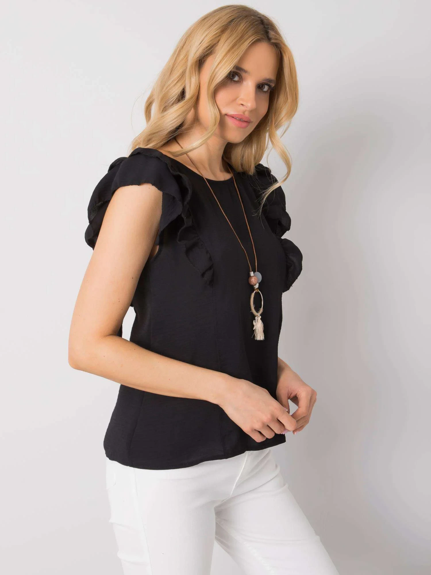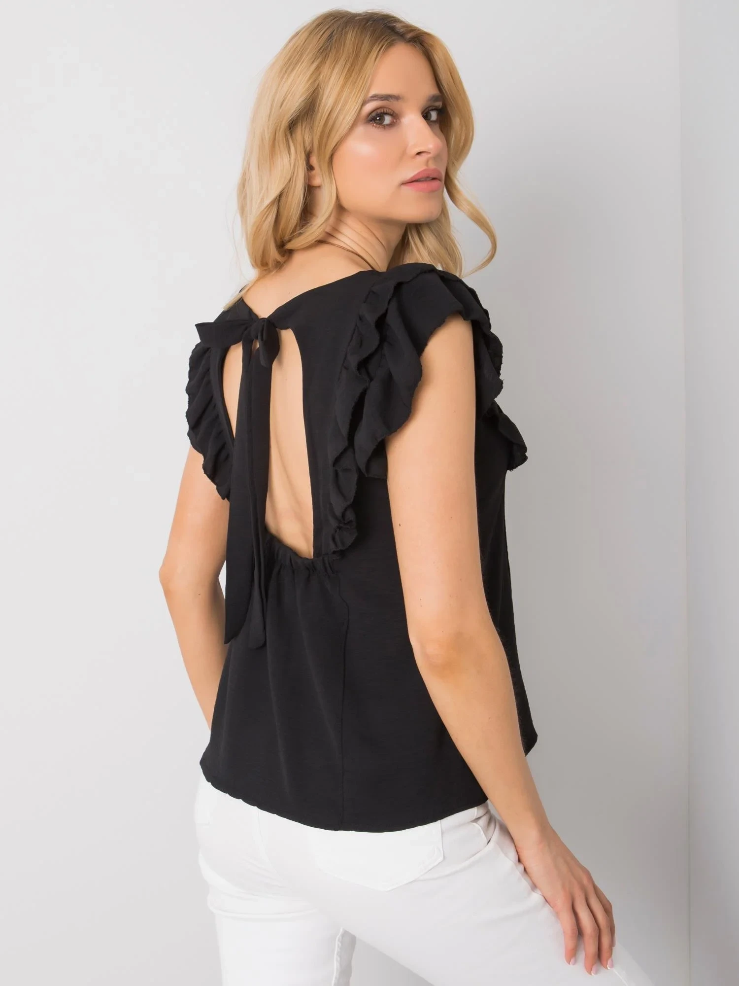 OCH BELLA Černá halenka s výstřihem na zádech.