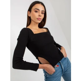 Černá krátká žebrovaná halenka s rozparky OCH BELLA .