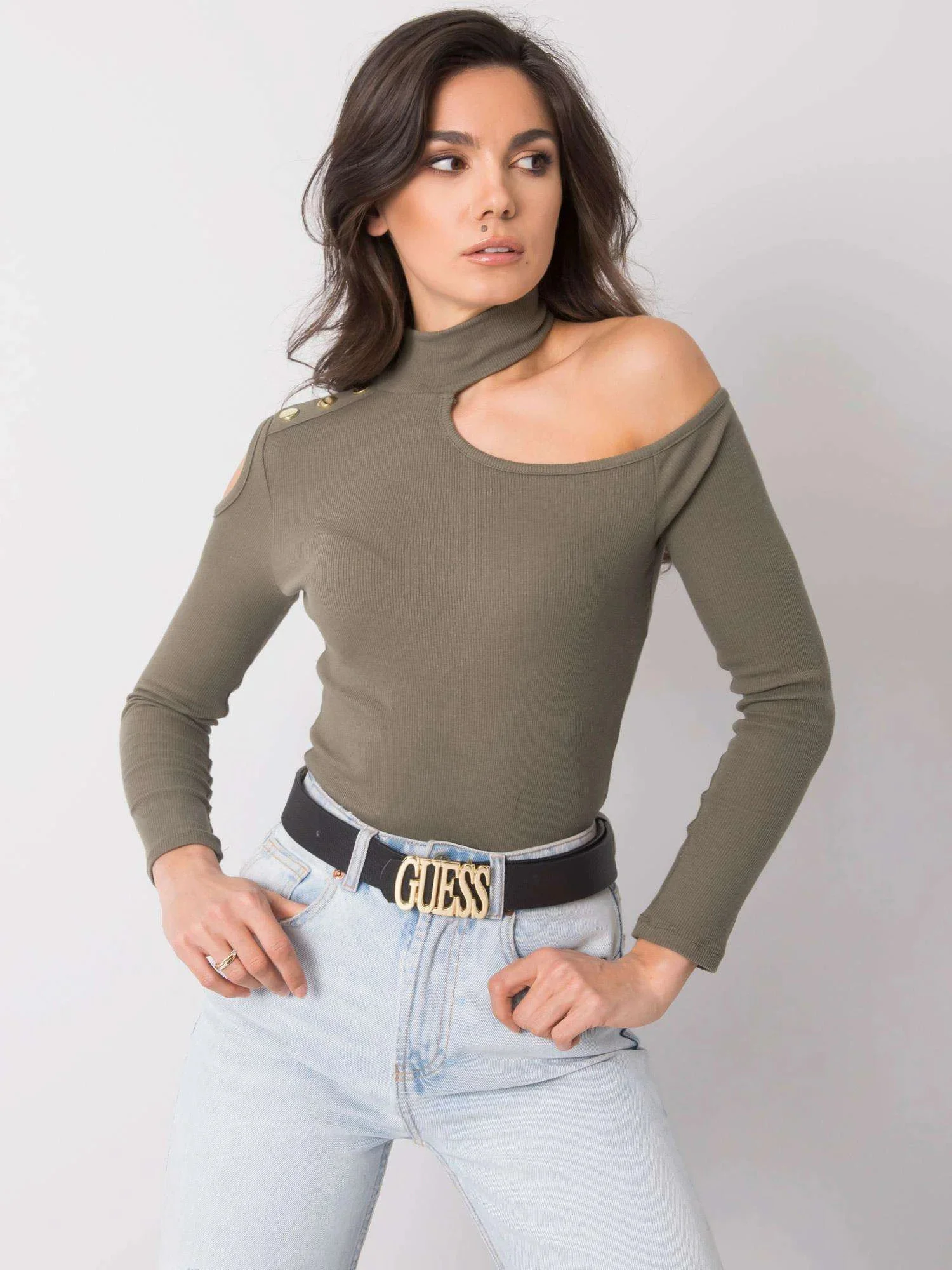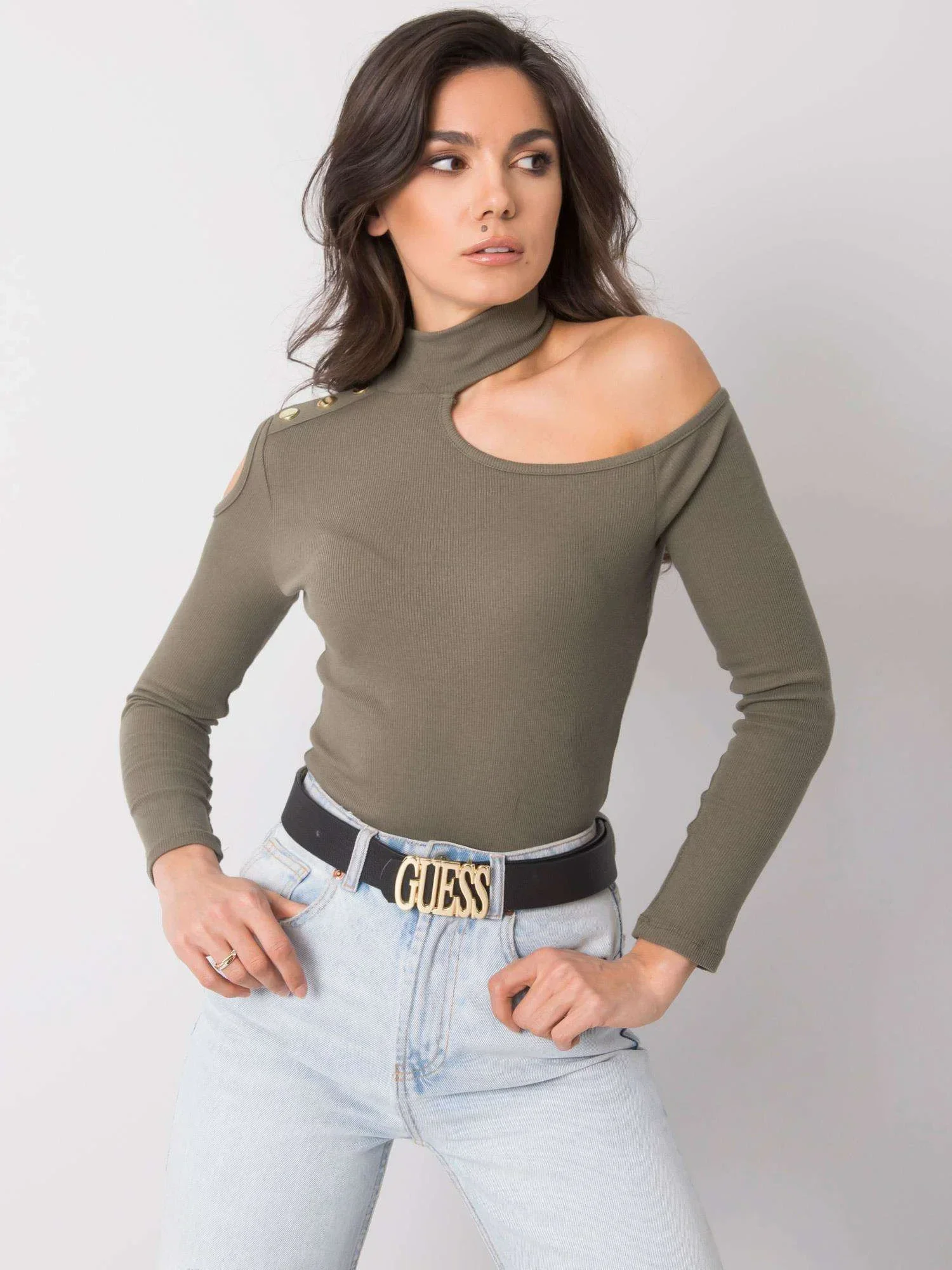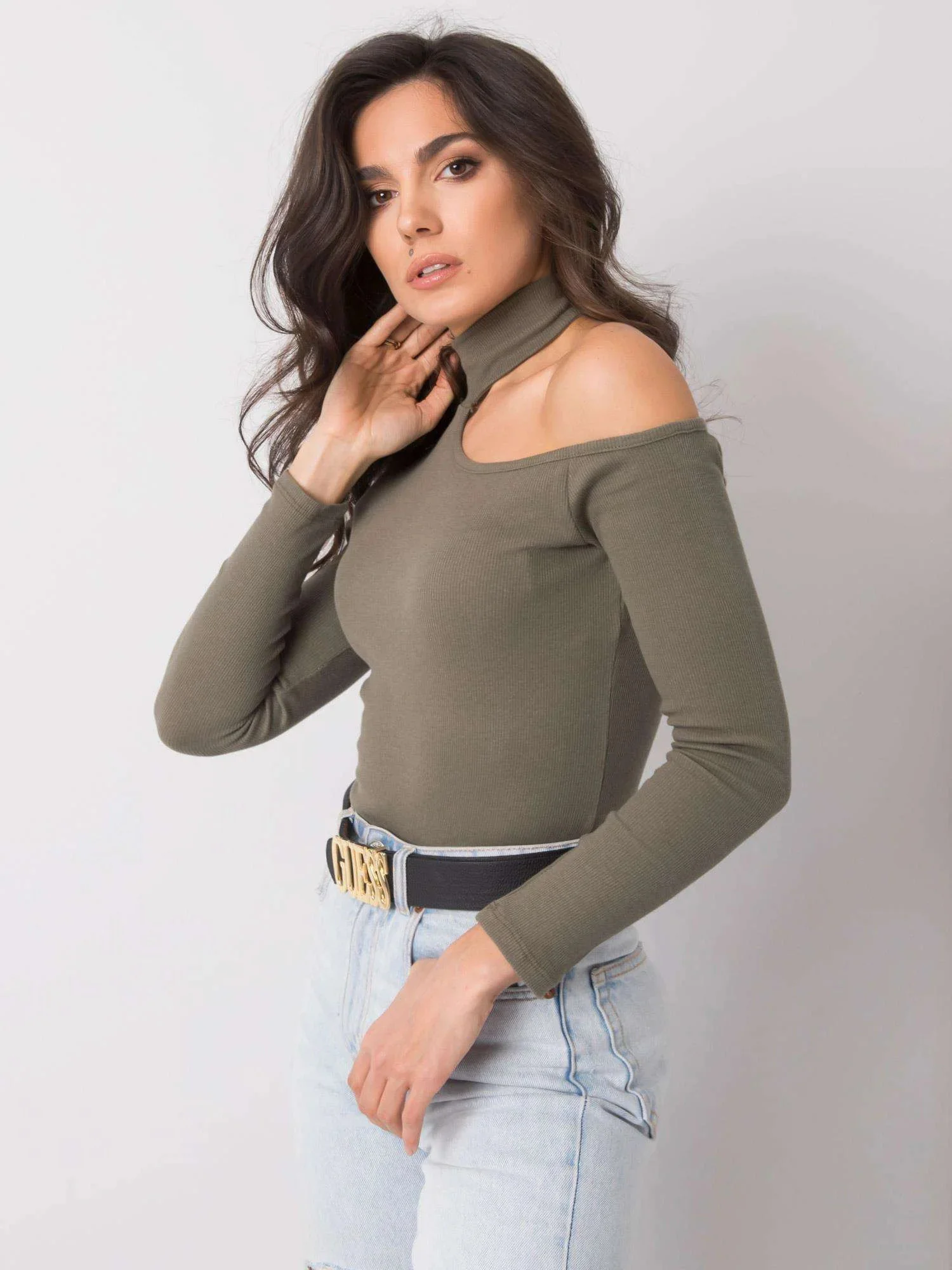OCH BELLA Khaki halenka s rolákem.