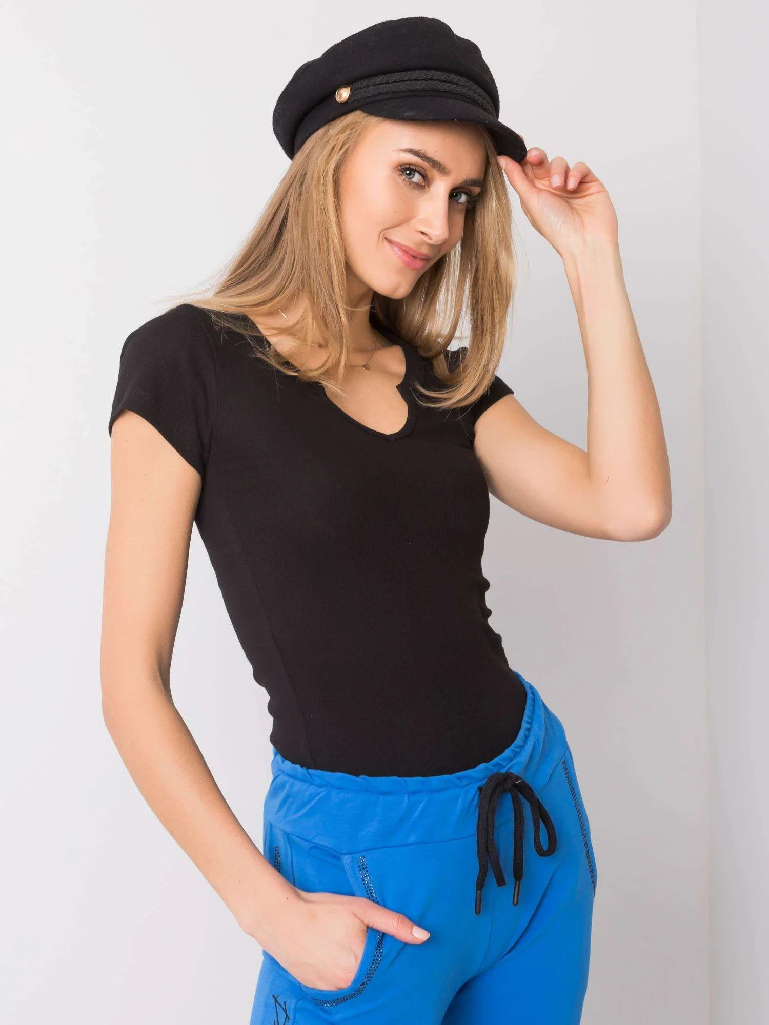 OCH BELLA Černé žebrované tričko.