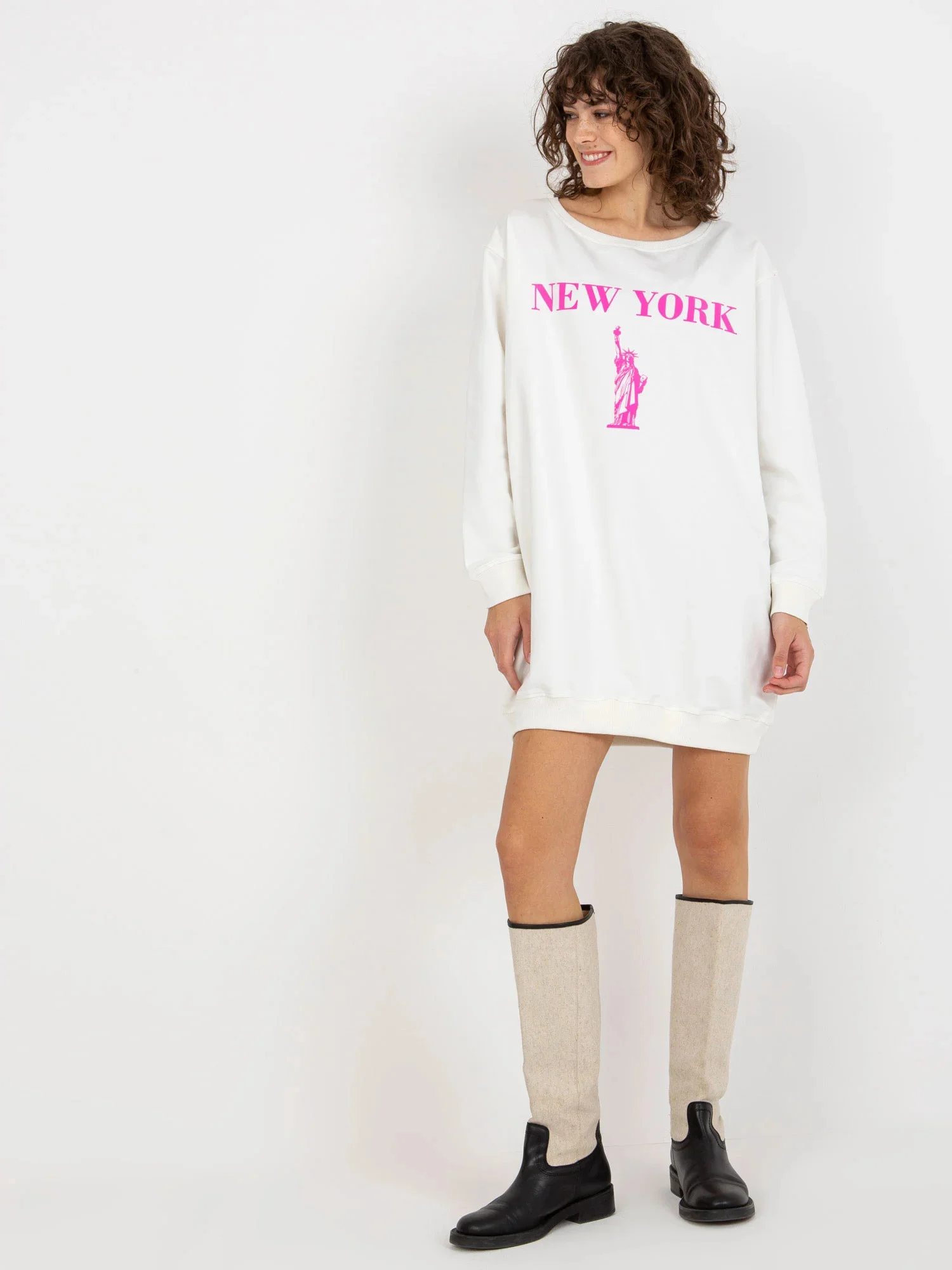 Ecru-růžová dlouhá oversize mikina s nápisy .
