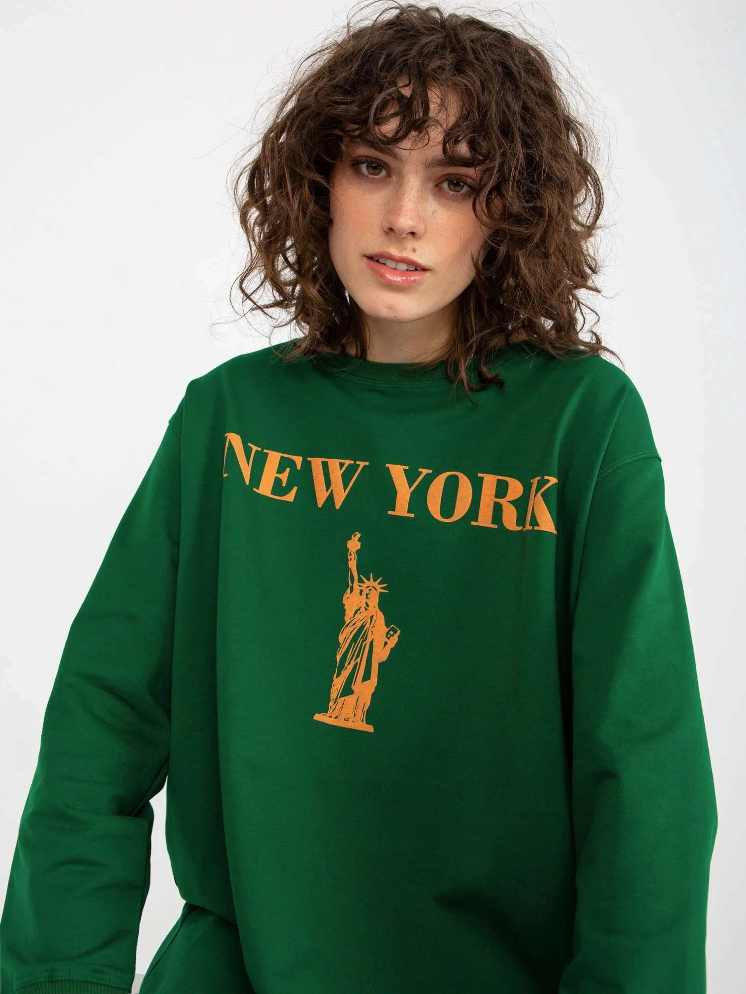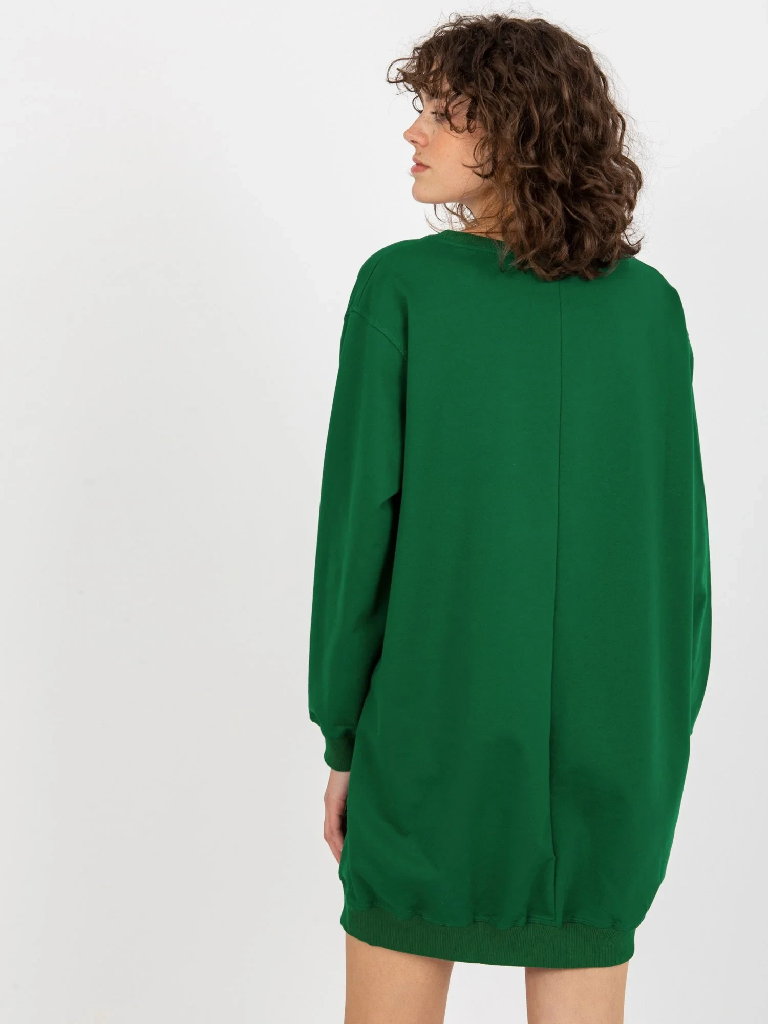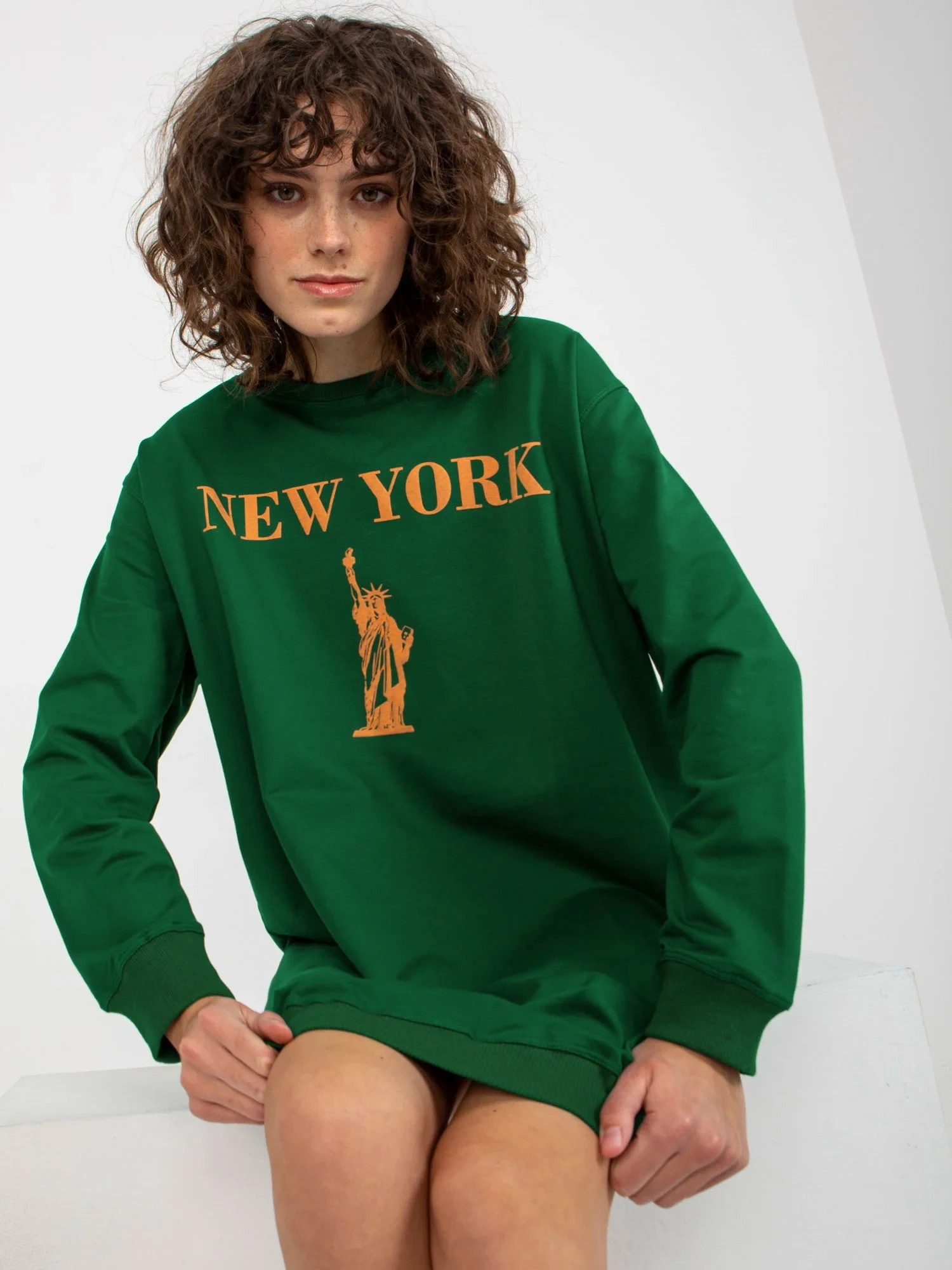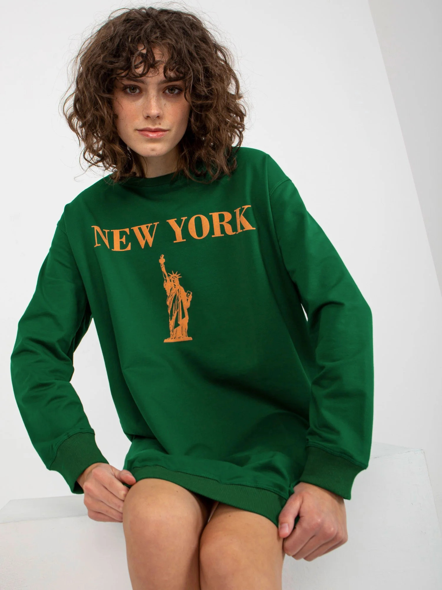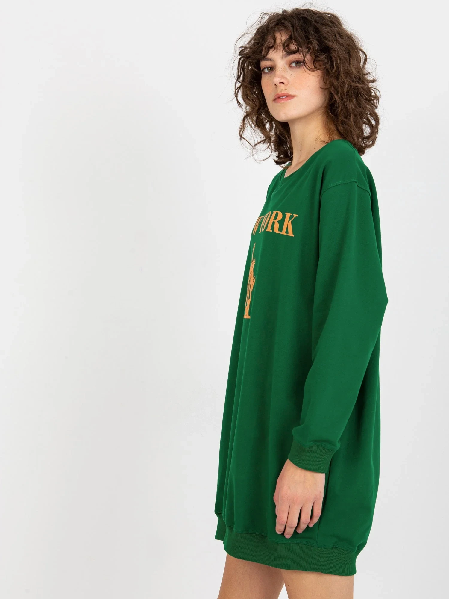 Tmavě zelená a oranžová dlouhá oversize mikina s nápisy .