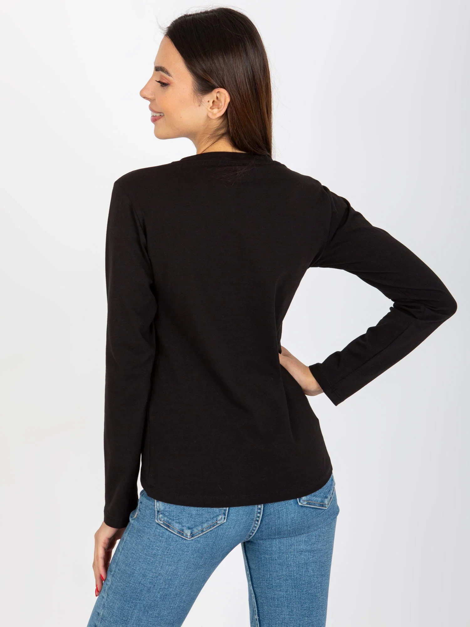 Černá hladká halenka s dlouhým rukávem a kulatým výstřihem .