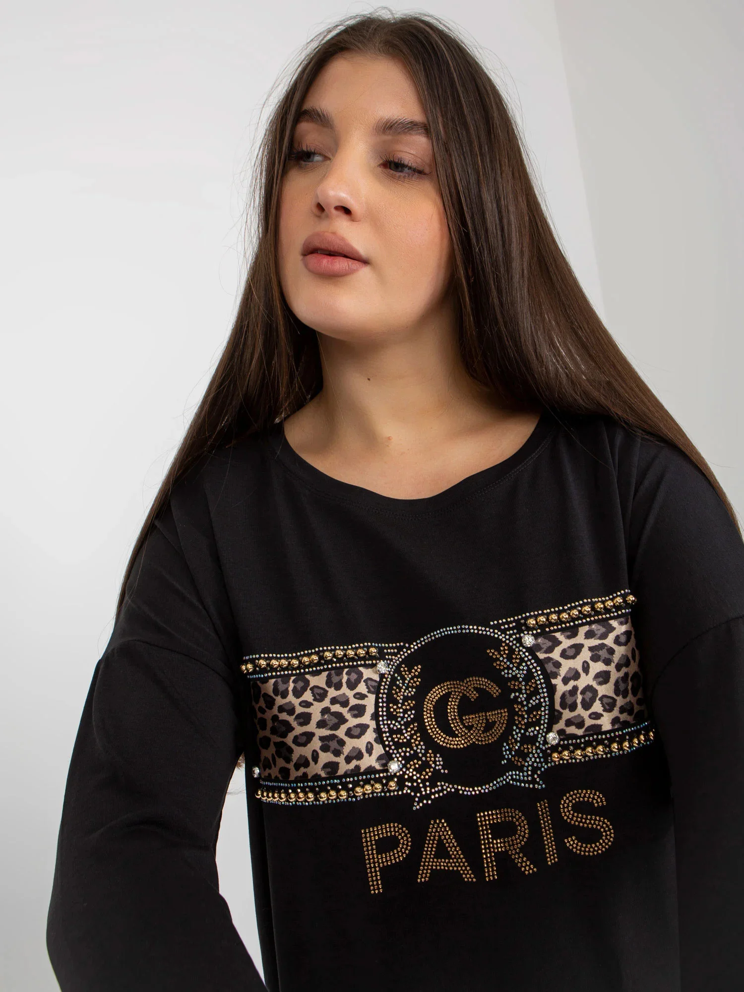 Modelka má na sobě jednu velikost. Rozměry modelky: výška 174 cm, prsa 100 cm, pas 74 cm, boky 107 cm.
