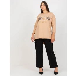 Rozměry halenky v jedné velikosti měřené na plocho: šířka v podpaží - 62 cm, délka rukávu - 50 cm, celková délka - 79 cm.