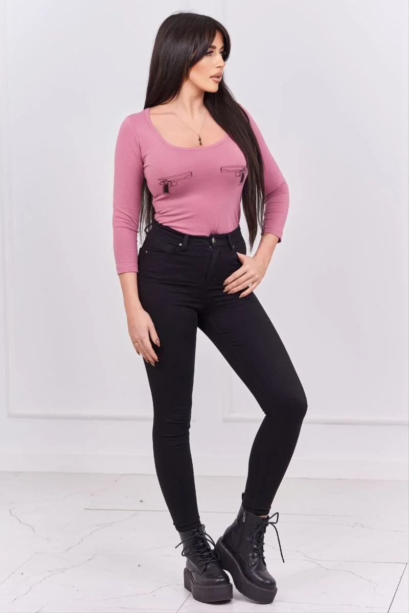 model 18746060 body s potiskem pistole tmavě růžové - K-Fashion